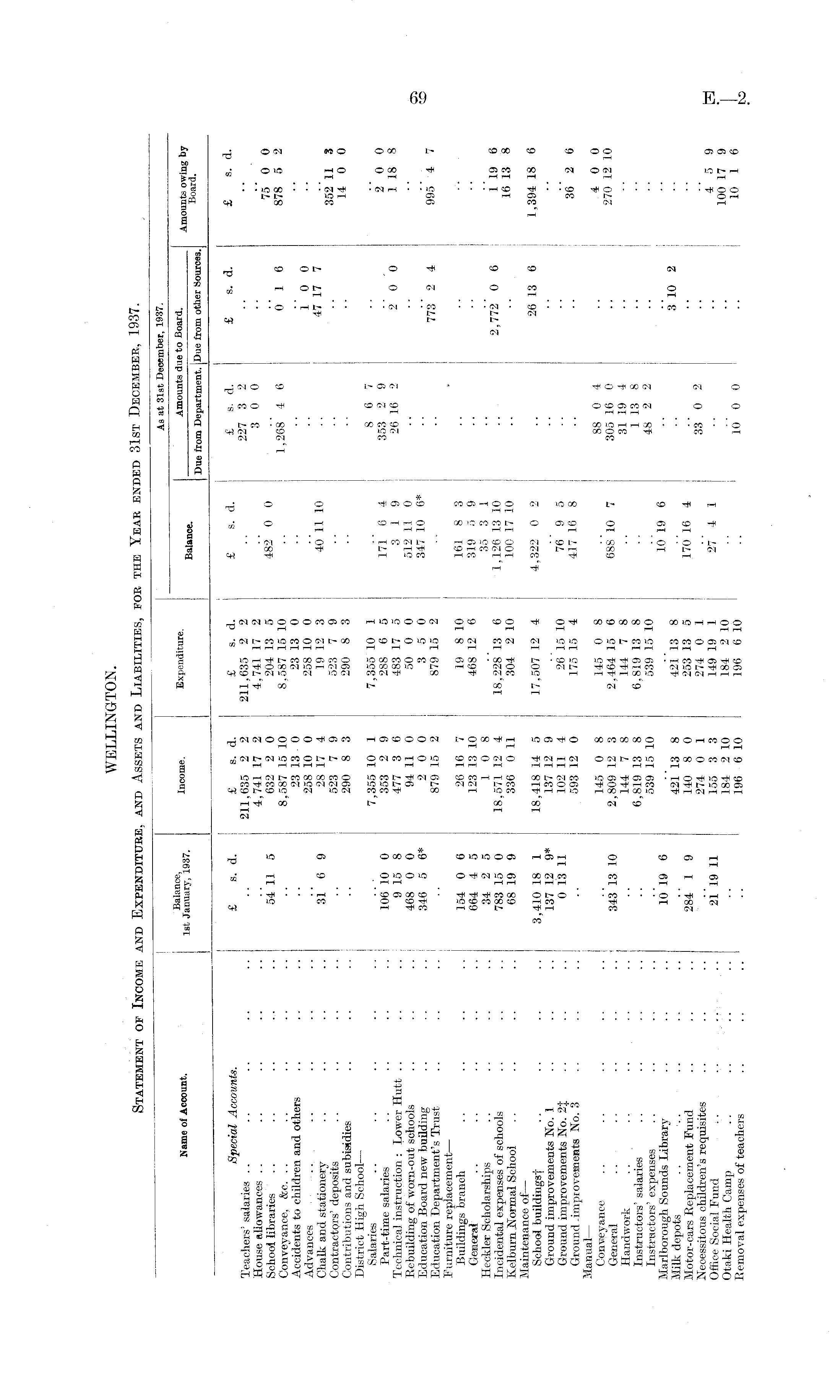 WELLINGTON. Statement of Income and Expenditure, and Assets and Liabilities, for the Year ended 31st December, 1937.