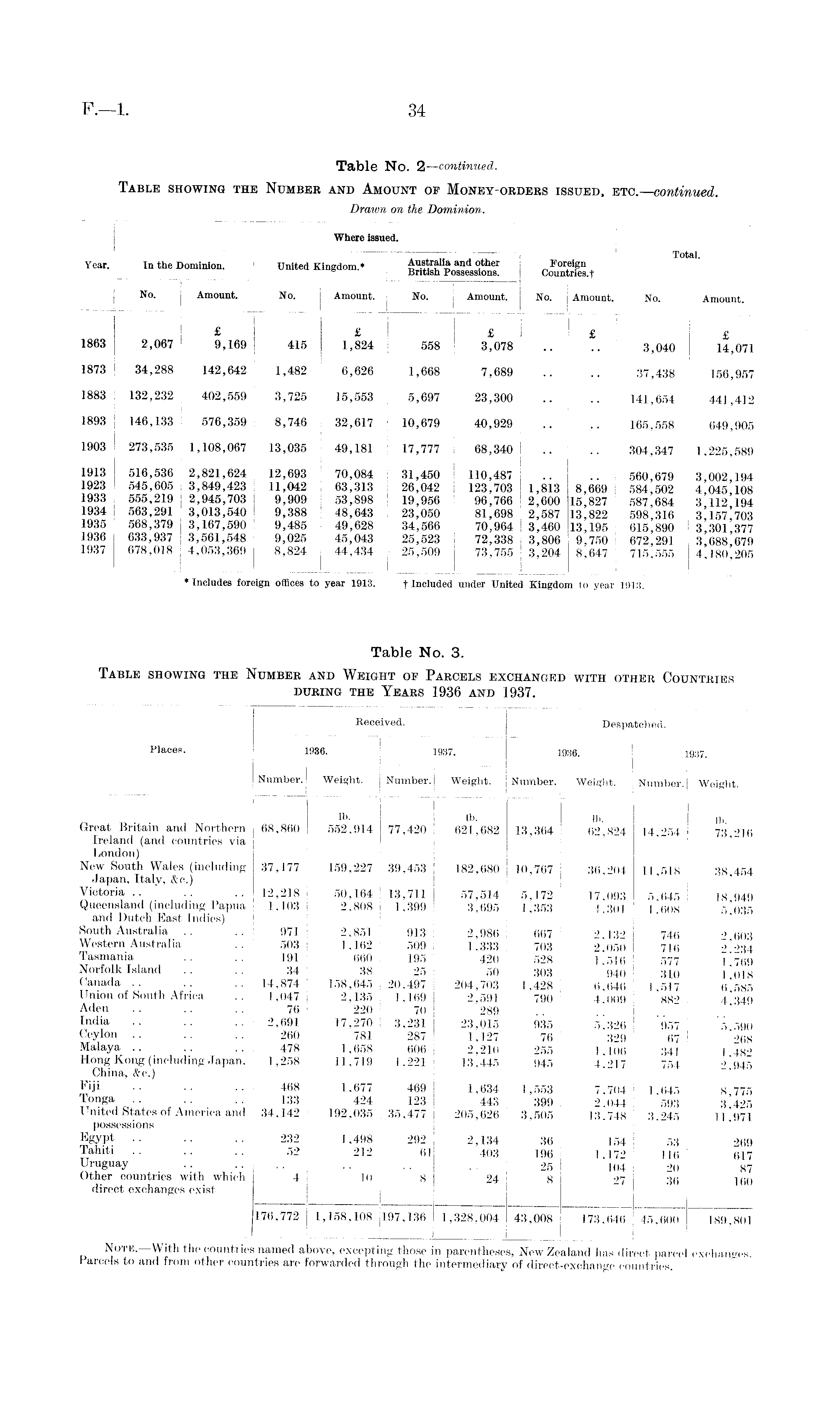 Table No. 2 —continued. Table showing the Number and Amount of Money-orders issued, etc. —continued. Drawn on the Dominion.