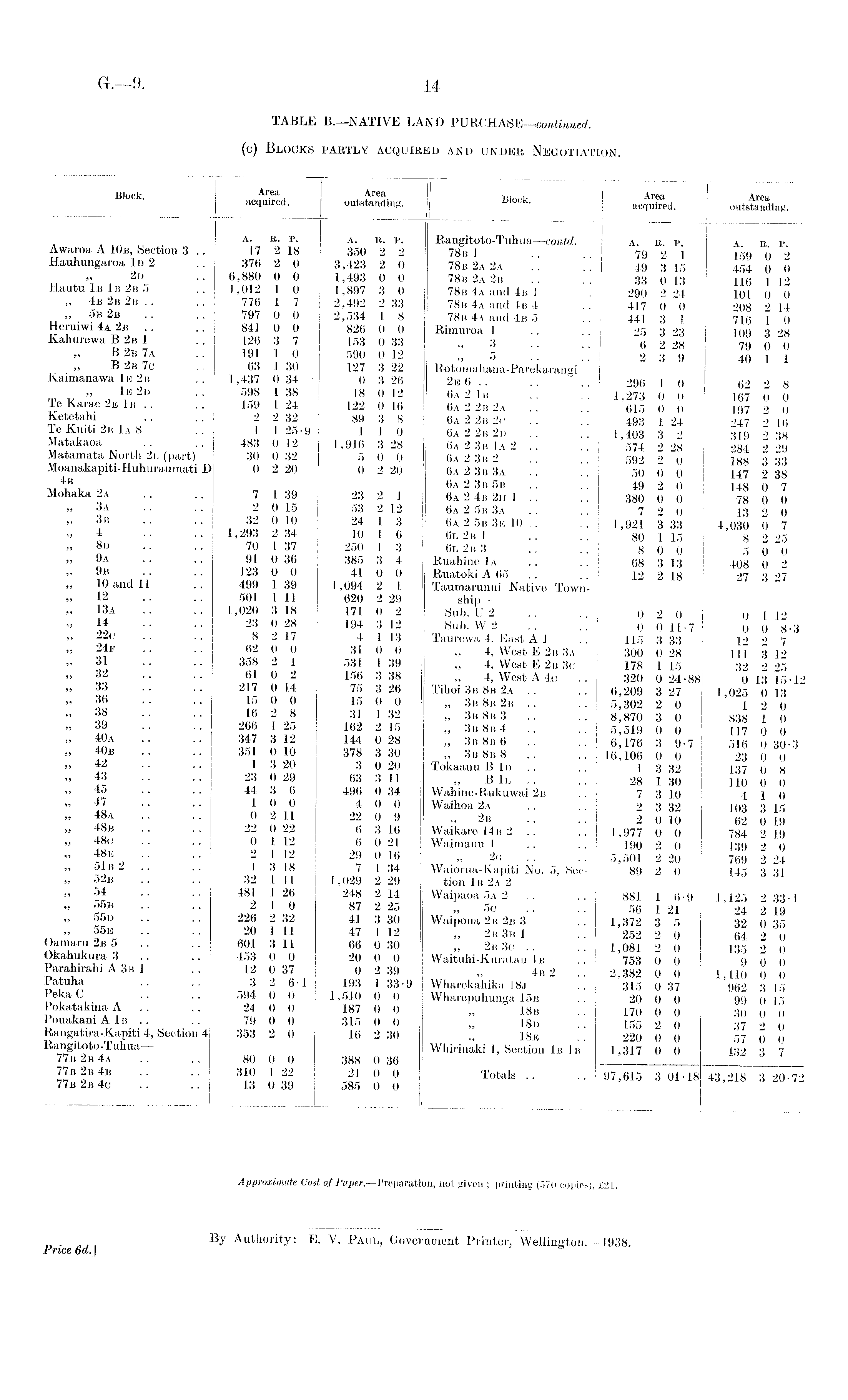 TABLE B.—NATIVE LAND PURCHASE—continued. (c) Blocks partly acquired and under Negotiation.