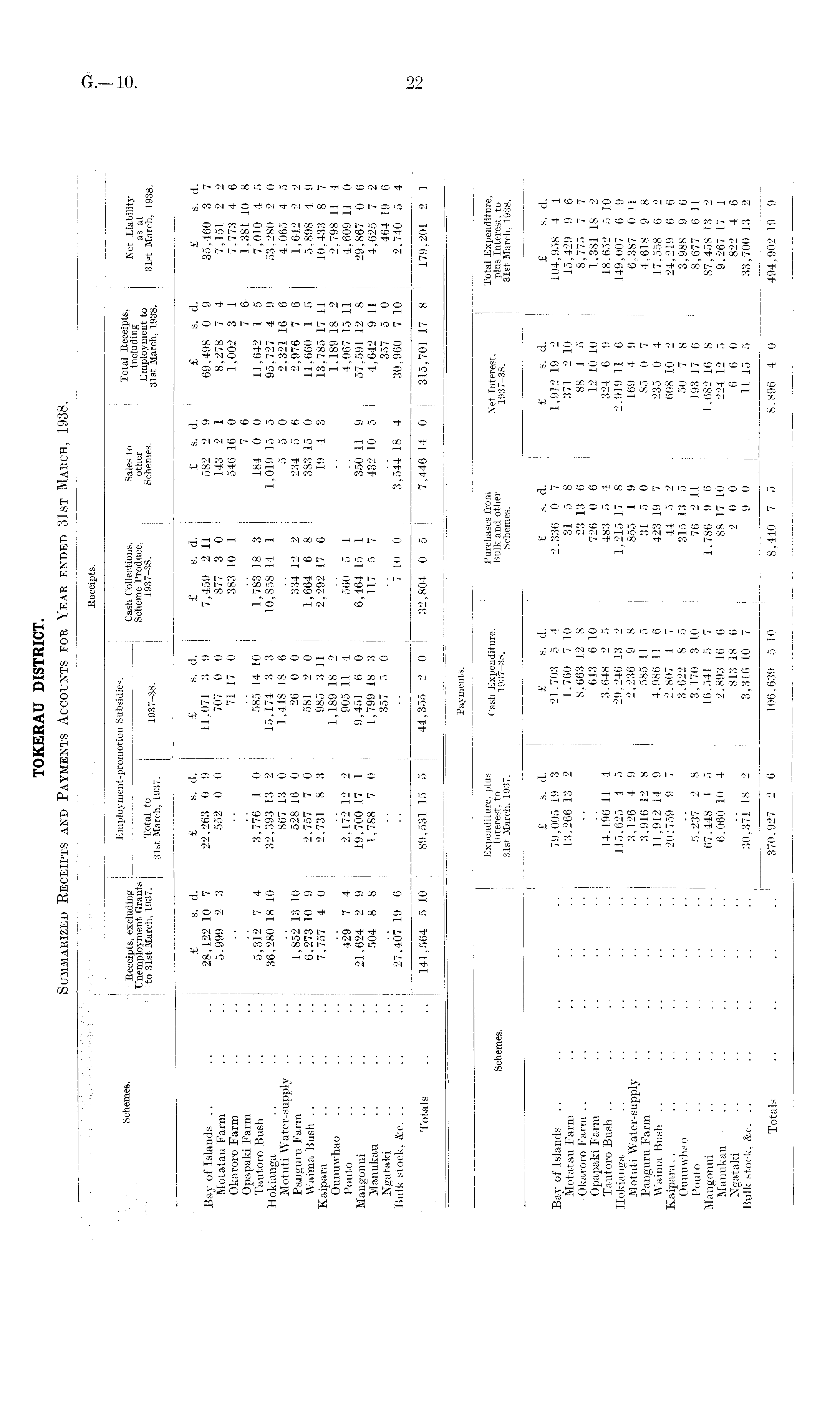 TOKERAU DISTRICT. Summarized Receipts and Payments Accounts for Year ended 31st March, 1938.