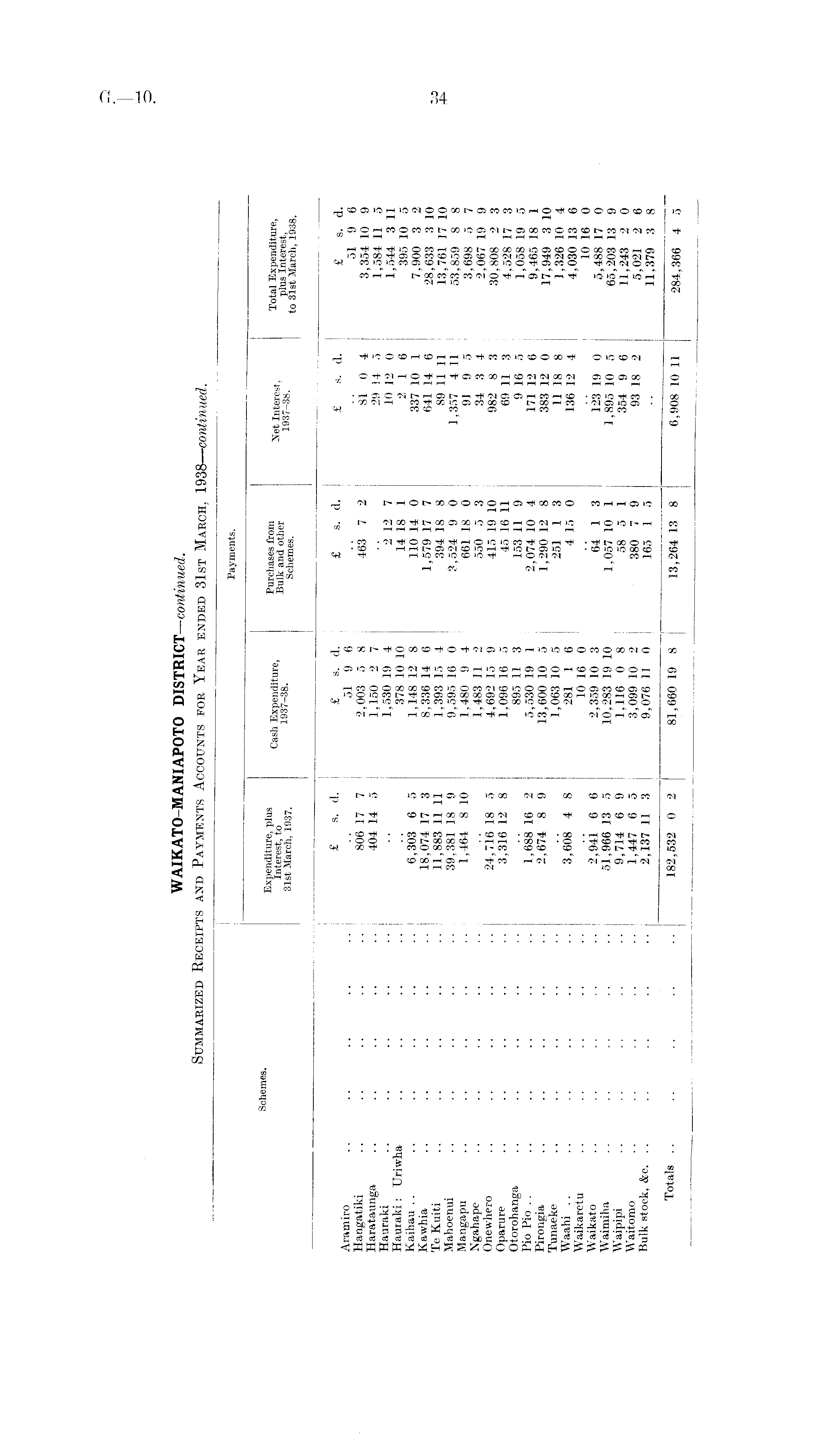 WAIKATO-MANIAPOTO DISTRICT— continued. Summarized Receipts and Payments Accounts for Year ended 31st March, 1938 —continued.