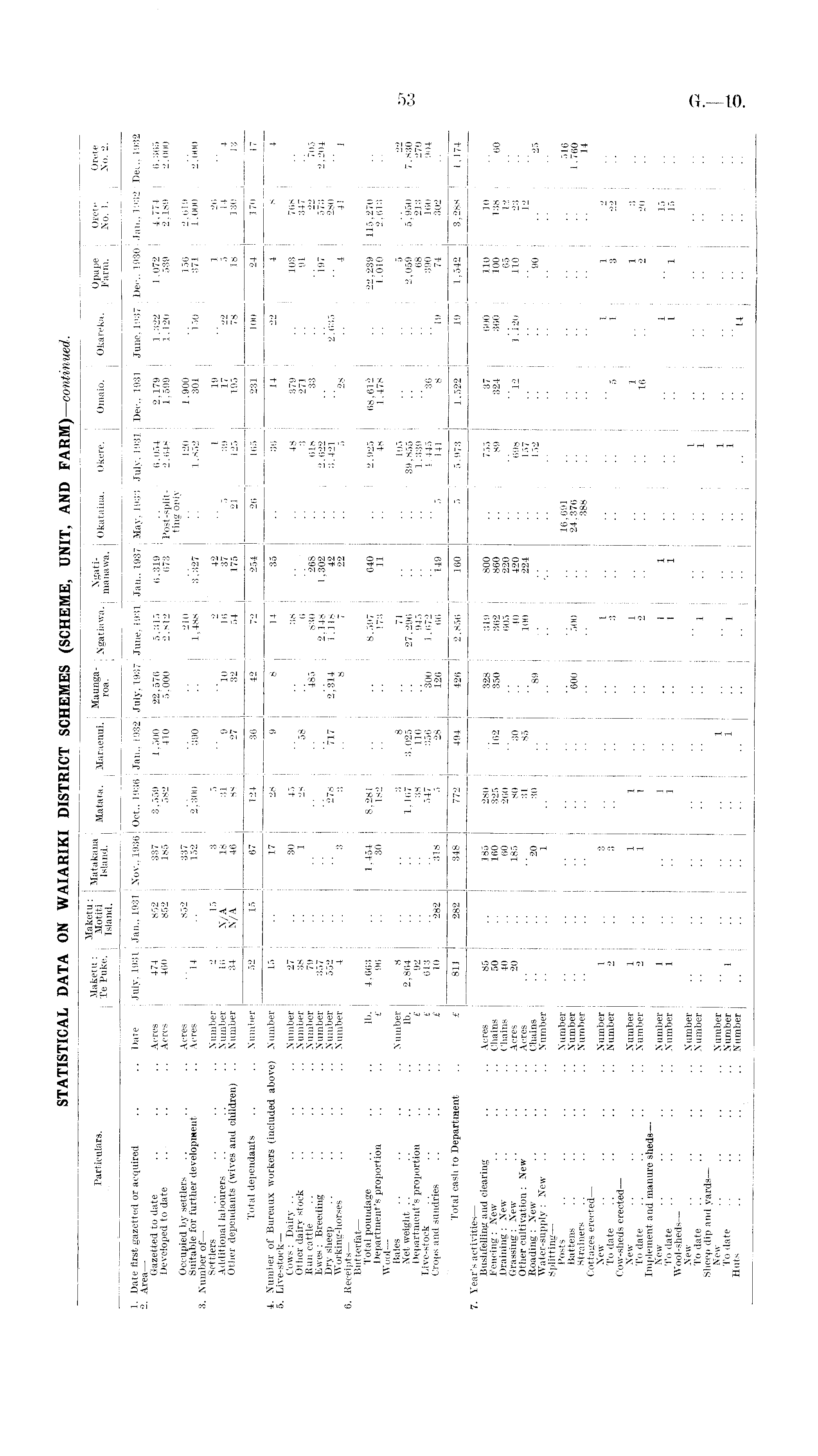 STATISTICAL DATA ON WAIARIKI DISTRICT SCHEMES (SCHEME, UNIT, AND FARM)— continued.