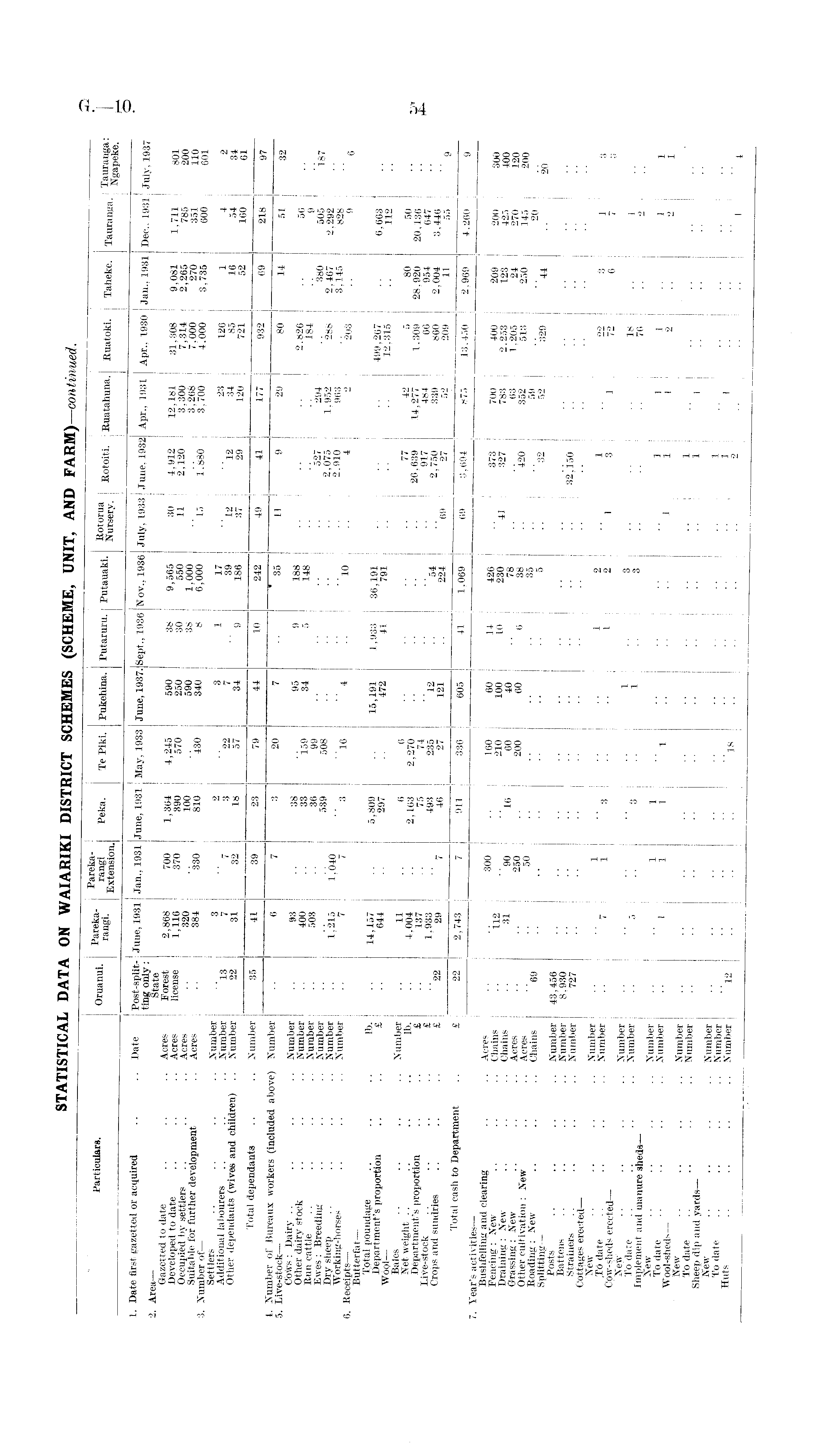 STATISTICAL DATA ON WAIARIKI DISTRICT SCHEMES (SCHEME, UNIT, AND FARM)— continued.