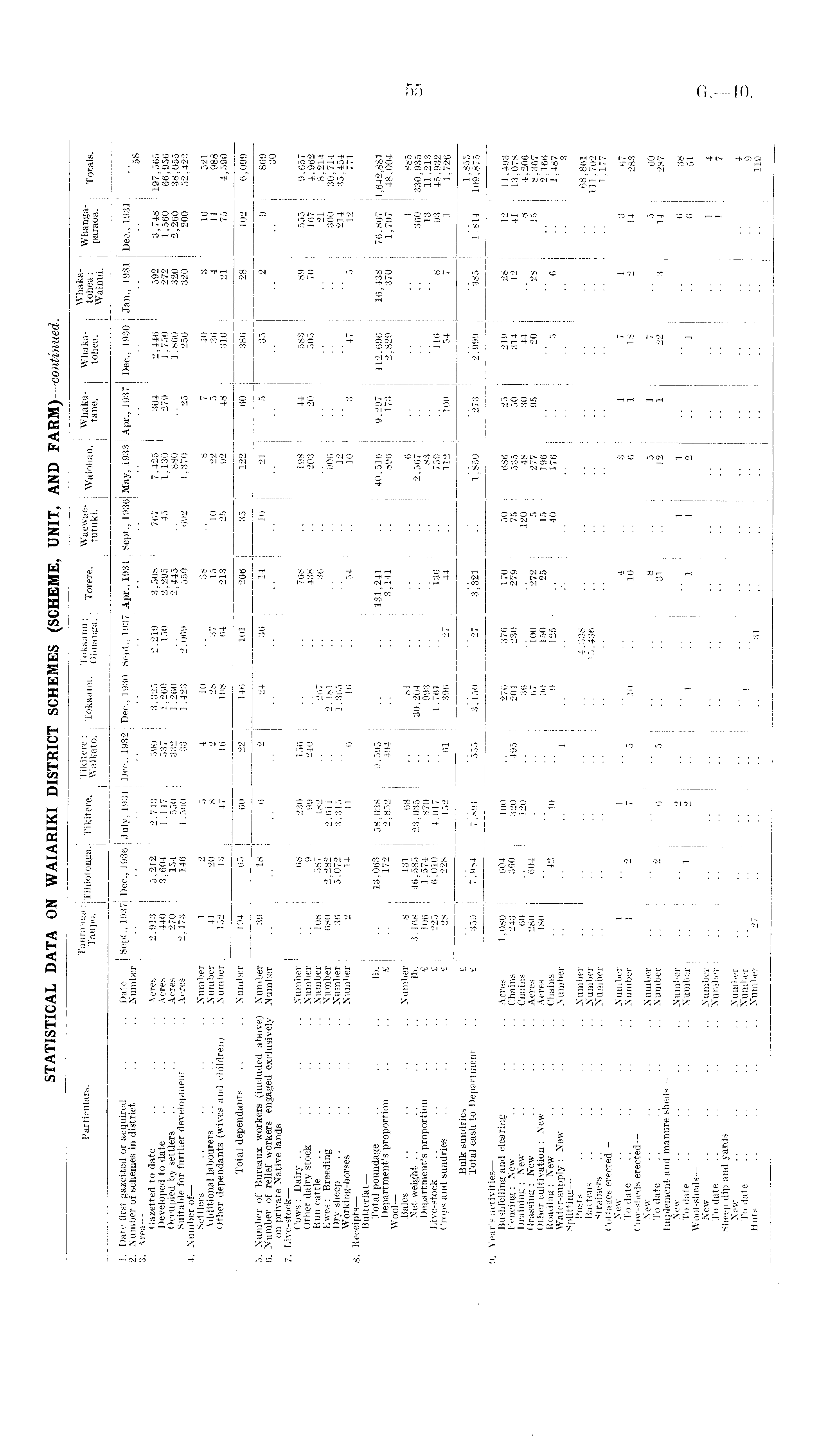 STATISTICAL DATA ON WAIARIKI DISTRICT SCHEMES (SCHEME, UNIT, AND FARM)— continued.