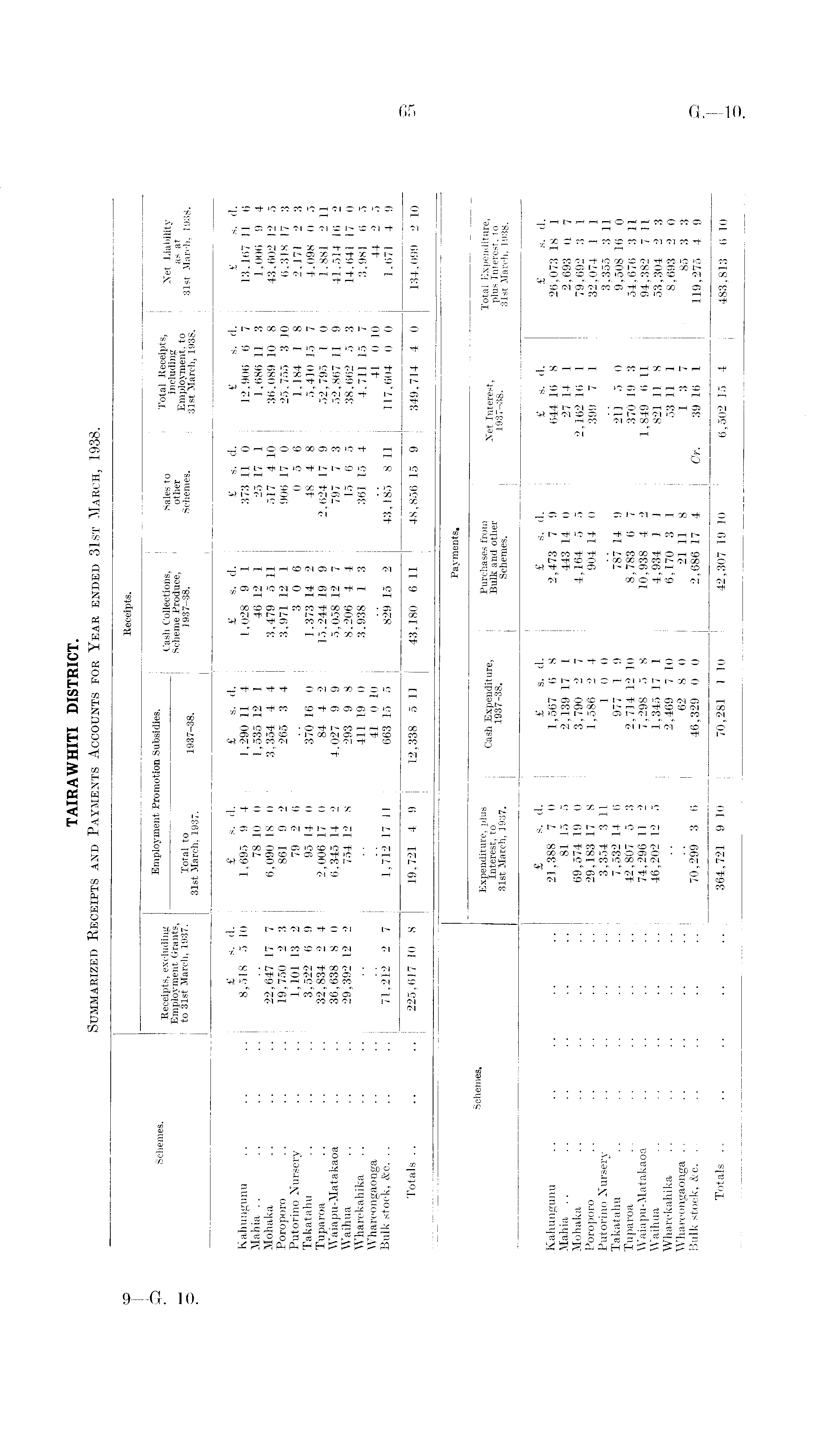 TAIRAWHITI DISTRICT. Summarized Receipts and Payments Accounts for Year ended 31st March, 1938.