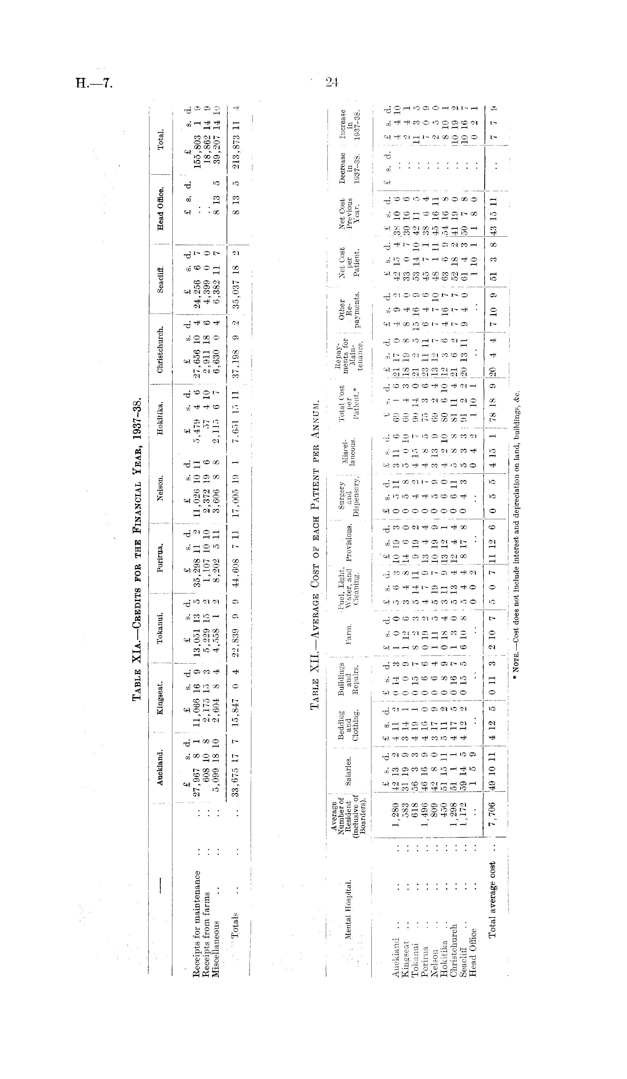 Auckland. Kingseat. Tokanui. Porirua. Nelson. Hokitika. Christchurch. Seacliff. Head Office. Total. — _ . ; - - : ~~ : j j " £ s. d. £ s. d. £ s. d. £ s. d. £ s. d. £ s. d. £ s. d. £ s. d. £ s. d. £ s. d. Receipts for maintenance .. .. 27,967 8 1 11,066 16 9 13,051 13 5 35,298 11 2 11,026 10 11 5,479 4 6 27,656 10 4 24,256 6 7 .. 155,803 1 9 Receipts from farms .. .. 608 10 8 2,175 15 3: 5,229 15 2 1,107 10 10 2,372 19 6 57 4 10 2,911 18 6 4,399 0 0 .. 18,862 14 9 Miscellaneous .. .. .. 5,099 18 10 2,604 8 4 4,558 1 2 8,202 5 11 3,606 8 8 2,115 6 7 6,630 0 4 6,382 11 7 8 13 5 39,207 14 10 Totals .. .. 33,675 17 7 15,847 0 4 22,839 9 9 44,608 7 11 17,005 19 1 7,651 15 11 37,198 9 2 35,037 18 2 8 13 5 j 213,873 11 4