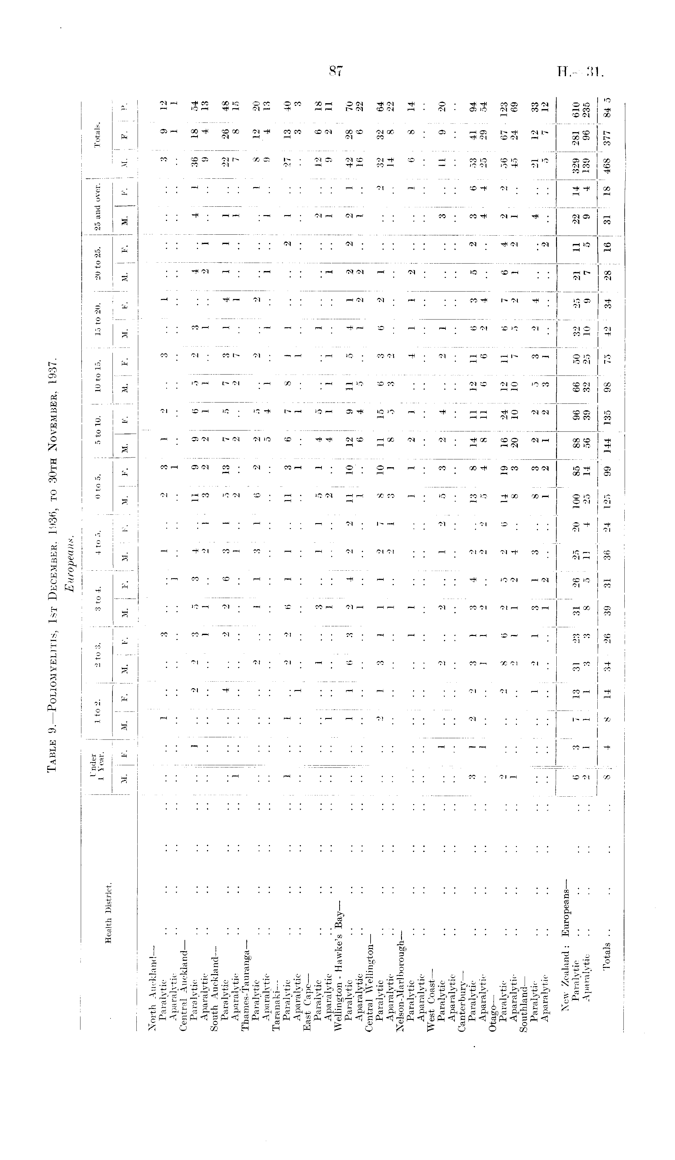Table 9.—Poliomyelitis, 1st December, 1936, to 30th November, 1937. Europeans.