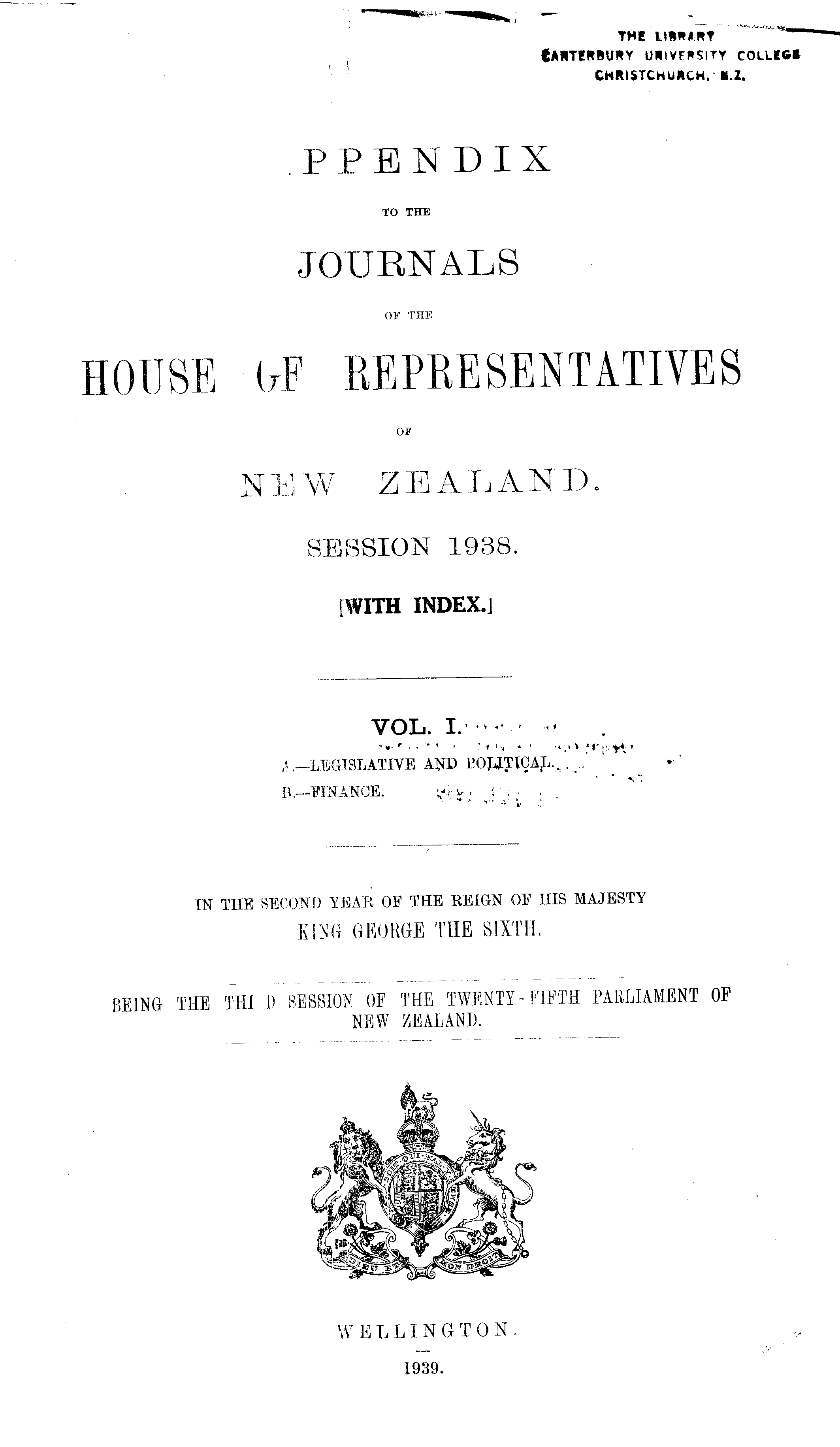 VOL. I. " A—LEGISLATIVE AND POLITICAL.,.. B. —FINANCE. ;4> i ! ■ ■ .