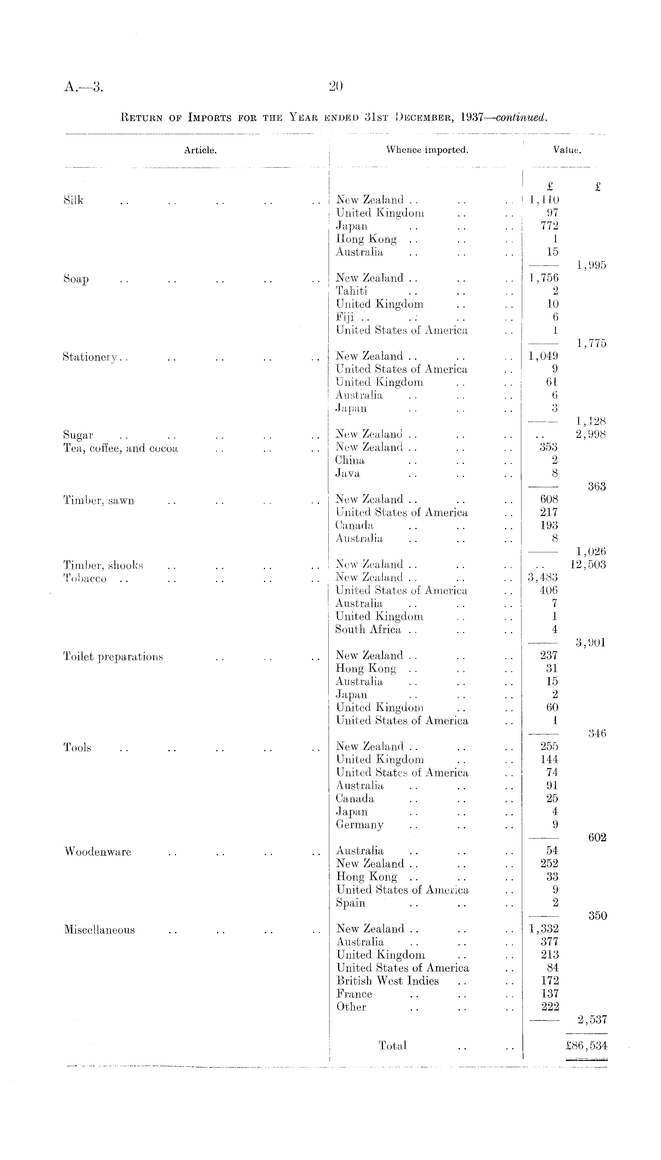 Return of Imports for the Year ended 31st December, 1937 —continued.
