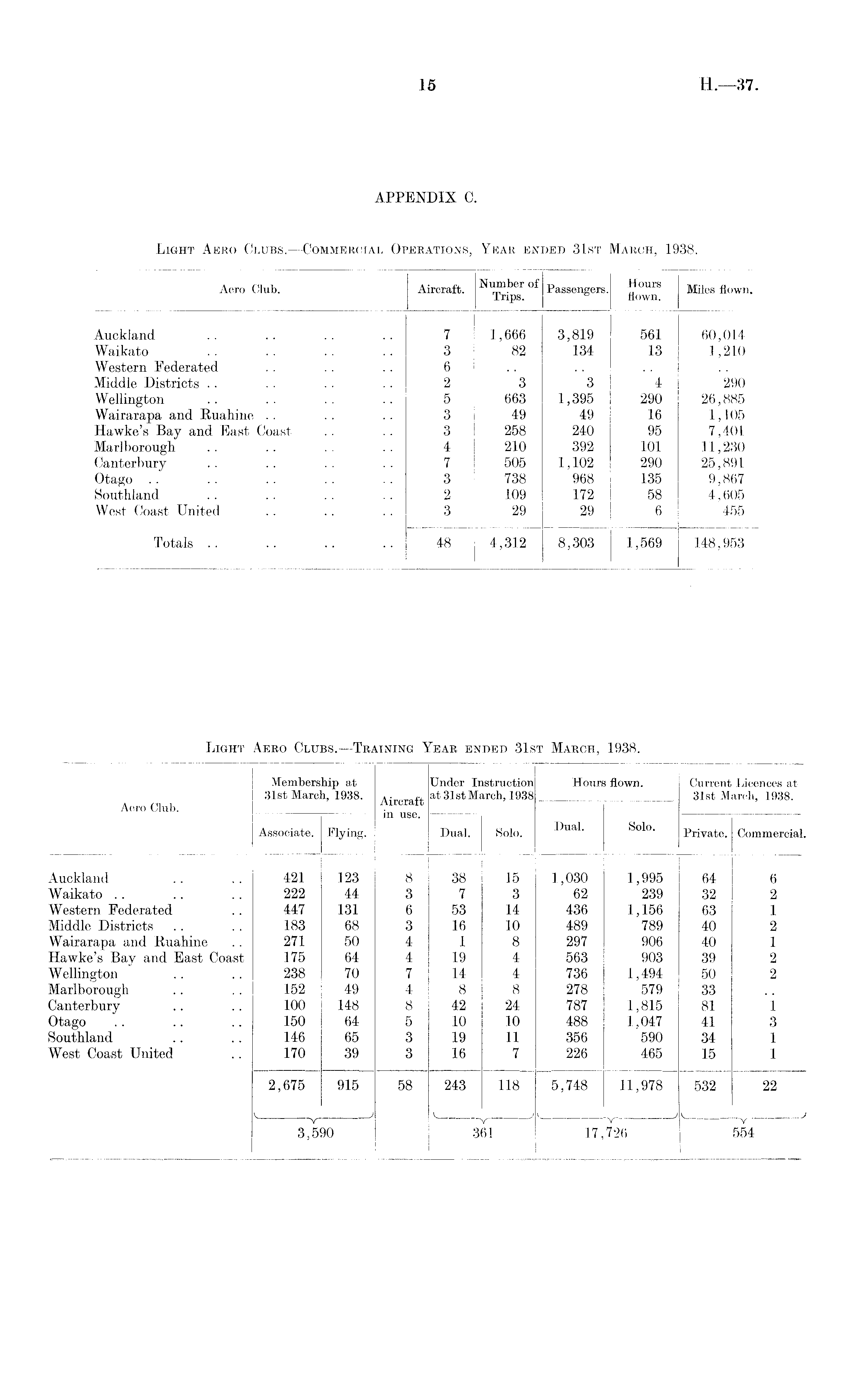 APPENDIX C. Light Aero Clubs.-Commercial Operations, Year ended 31st March, 1938.