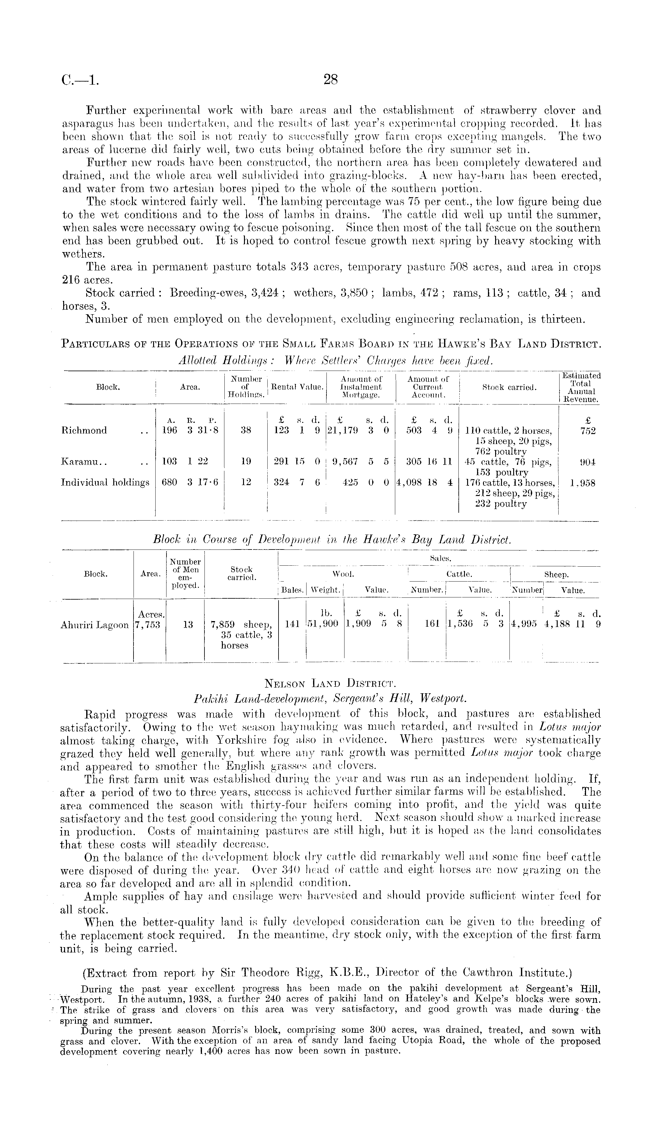 Particulars of the Operations of the Small Farms Board in the Hawke's Bay Land District. Allotted Holdings: Where Settlers' Charges have been fixed.