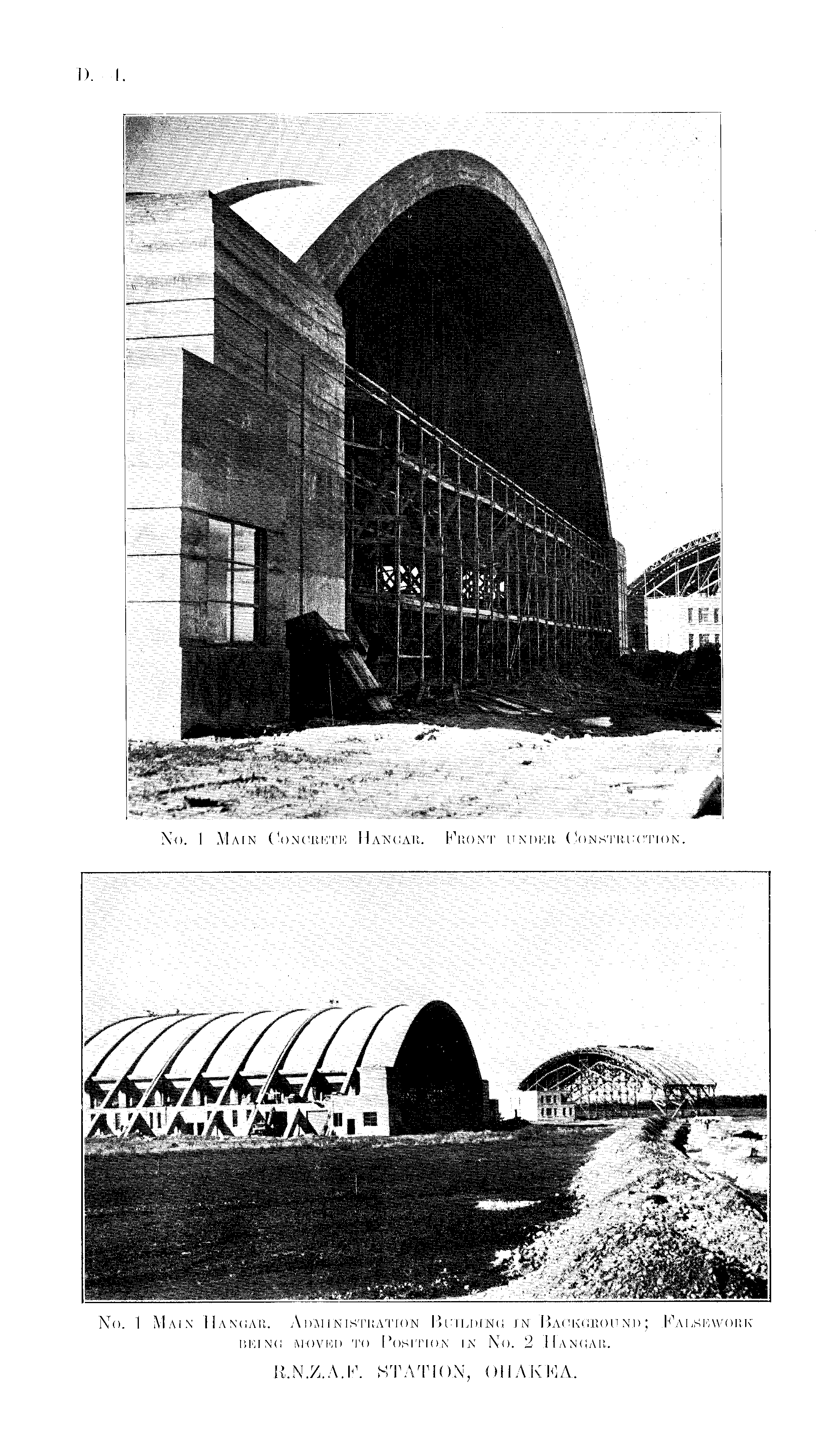 No. 1 Main Hangar. Administration Building in Background; Falsework being moved to Position in No. 2 Hangar.