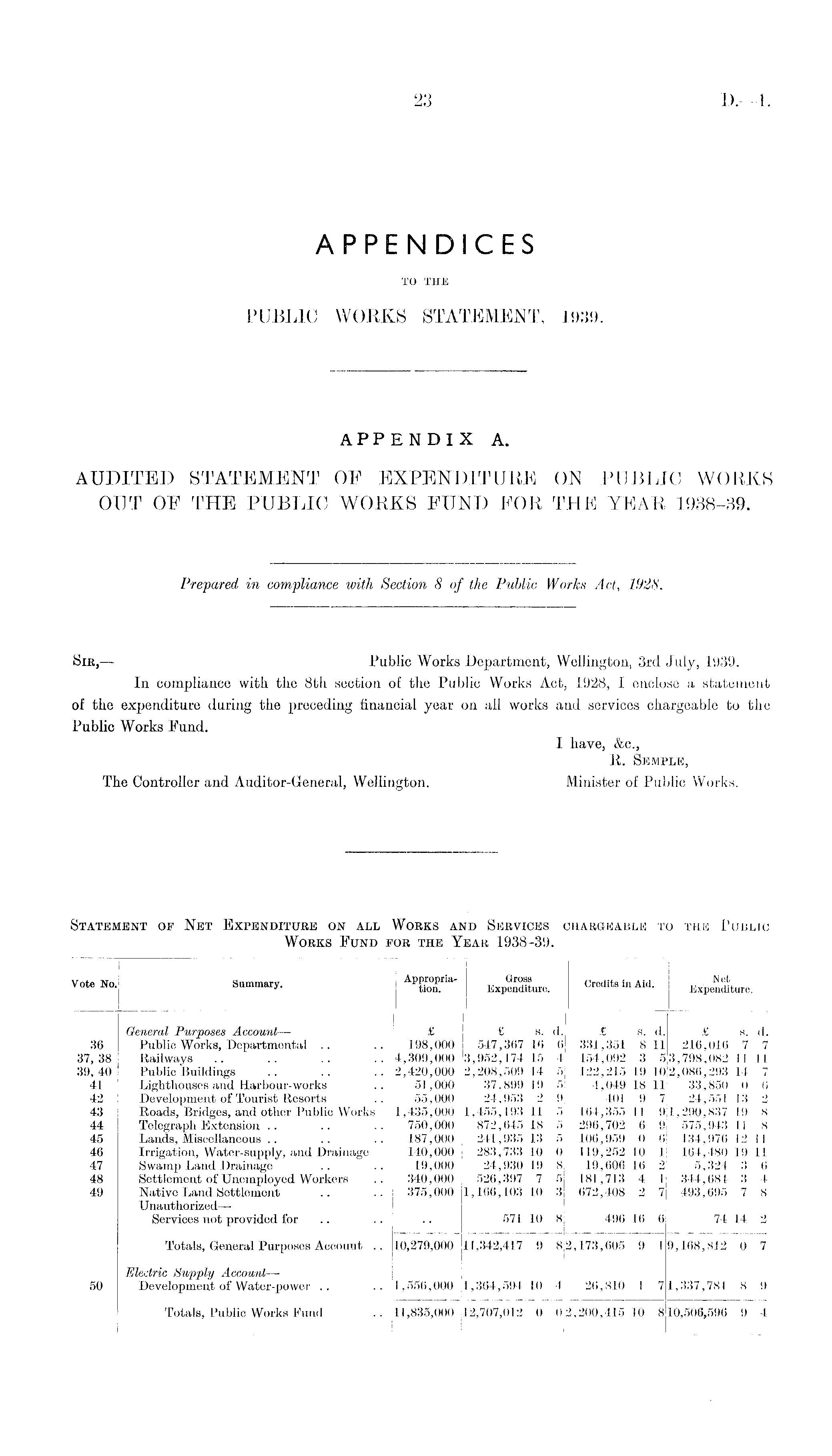 APPENDICES TO THE PUBLIC WORKS STATEMENT, 1939.