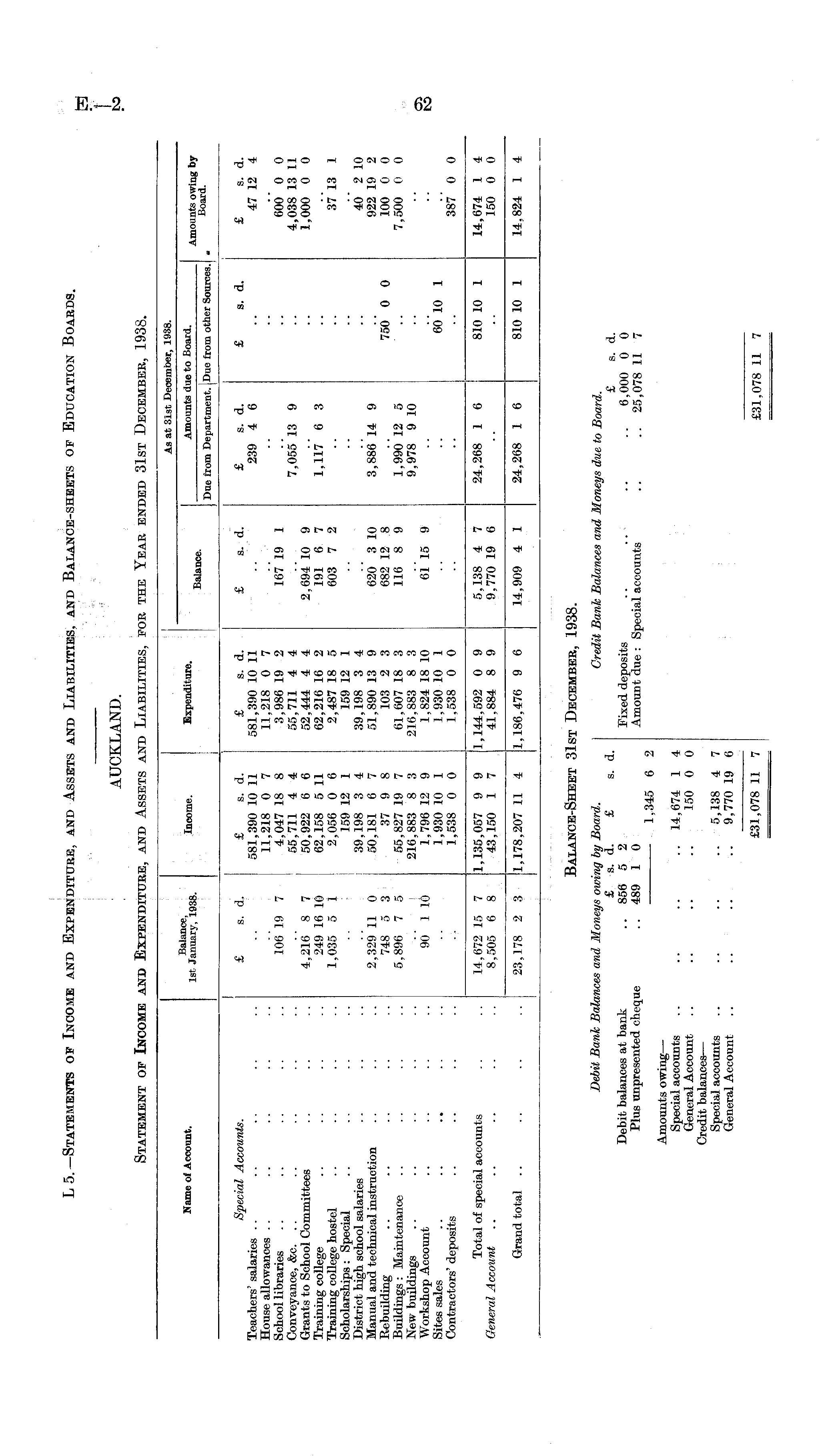 Balance-Sheet 31st December, 1938. Debit Bank Balances and Moneys owing by Board. Credit Bank Balances and Moneys due to Board. £ s. d. £ s. d. £ s. d. Debit balances at bank .. 856 5 2 Fixed deposits .. .. .. .. 6,000 0 0 Plus unpresented cheque .. 489 1 0 Amount due : Special accounts .. .. 25,078 11 7 1,345 6 2 Amounts owing— Special accounts .. .. .. .. 14,674 1 4 General Account .. .. .. .. 150 0 0 Credit balances— Special accounts .. .. .. .. 5,138 4 7 General Account .. .. .. .. 9,770196 £31,078 11 7 £31,078 11 7