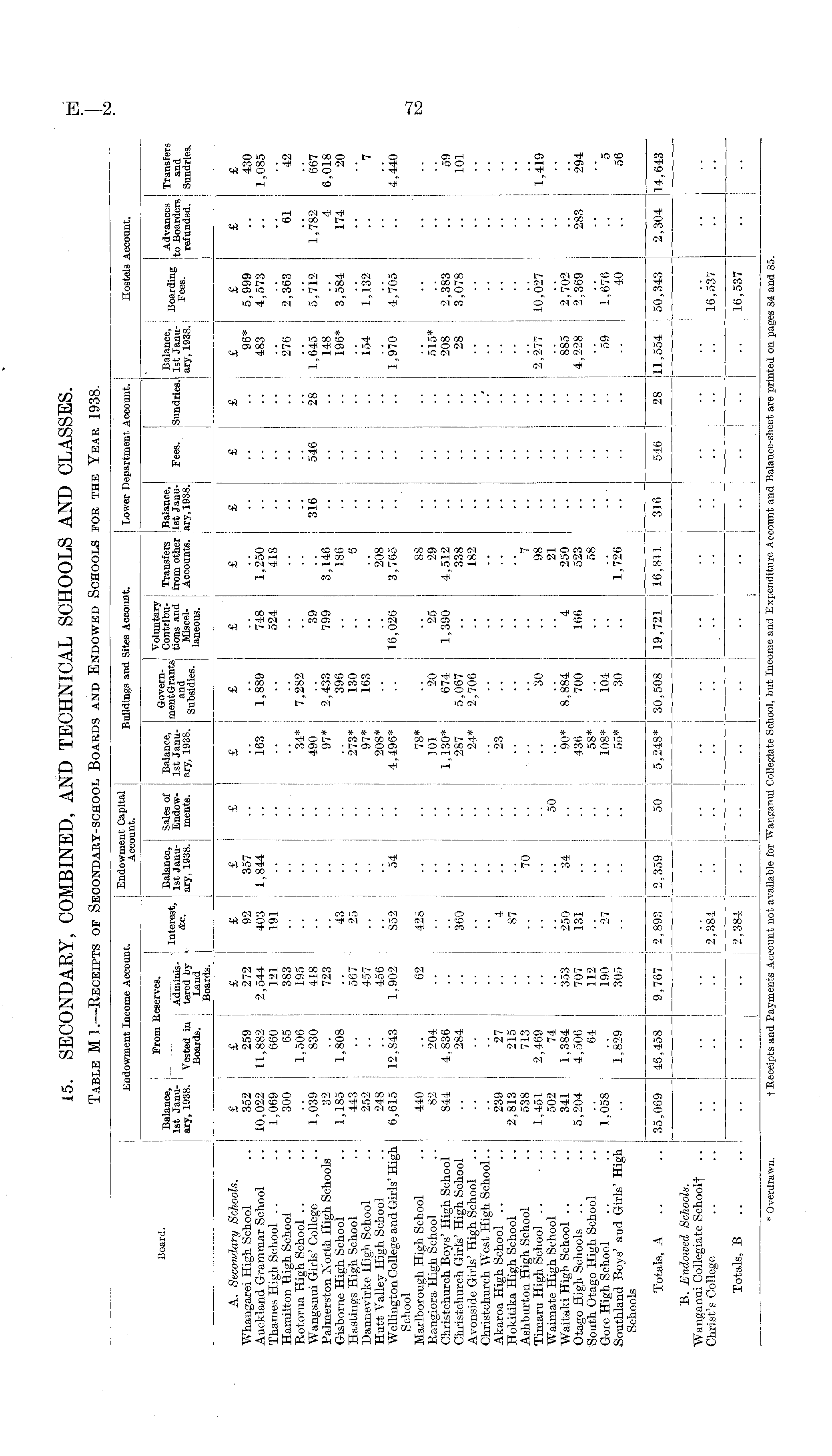 15. SECONDARY, COMBINED, AND TECHNICAL SCHOOLS AND CLASSES. Table M1.—Receipts of Secondary-school Boards and Endowed Schools for the Year 1938.