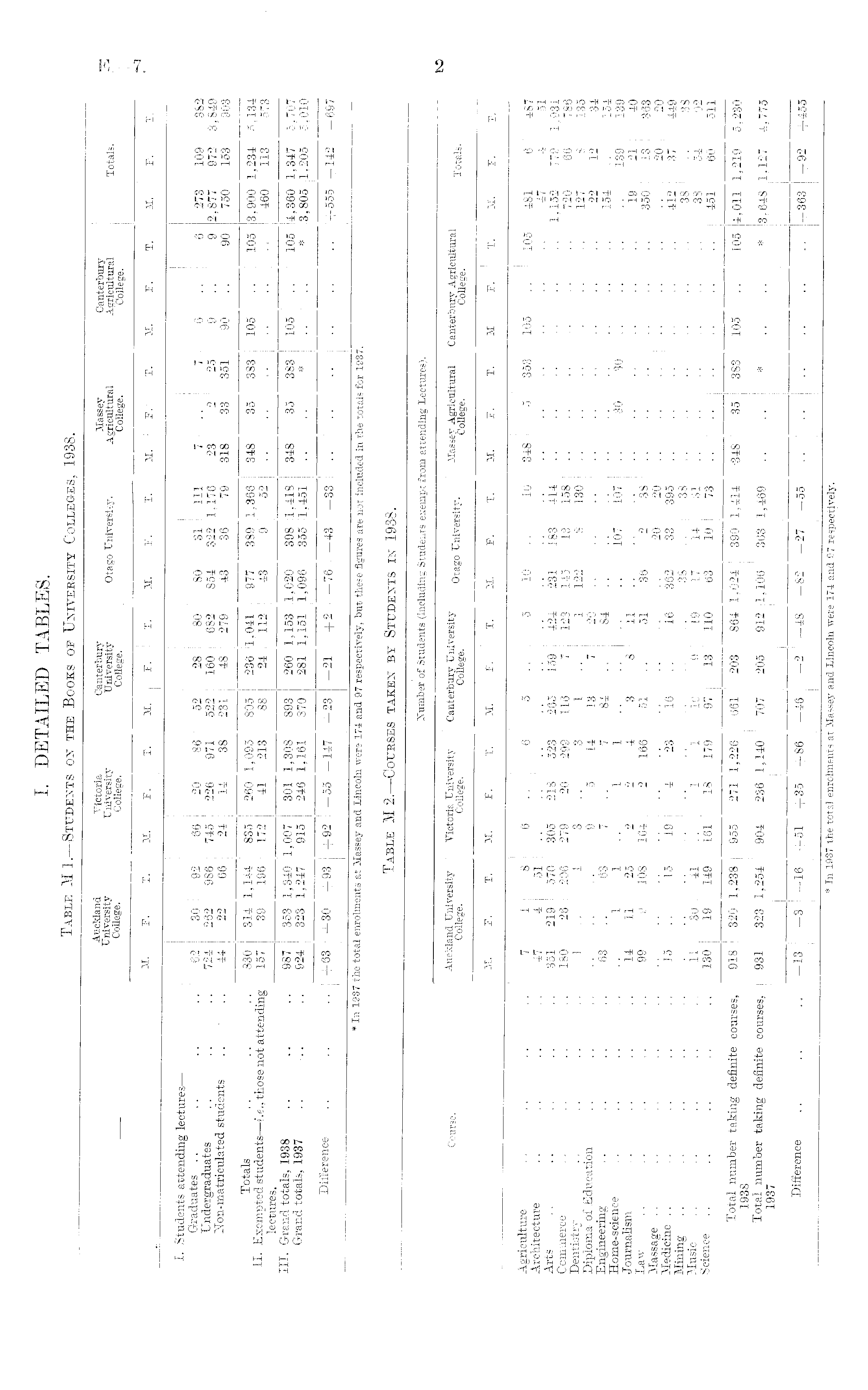 I. DETAILED TABLES. Table M 1.—Students on the Books of University Colleges, 1938.