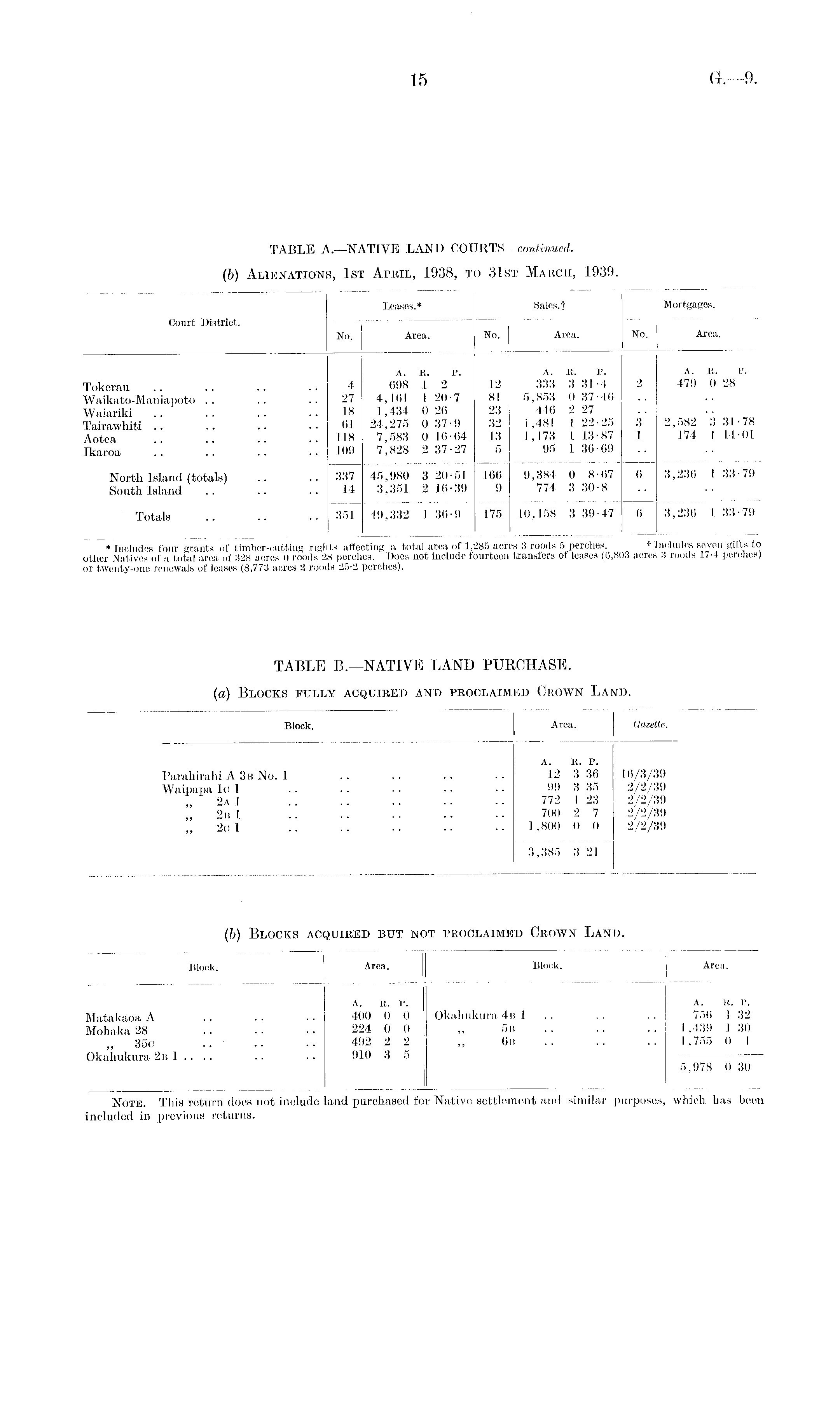 TABLE A.—NATIVE LAND COURTS —continued. (b) Alienations, 1st April, 1938, to 31st March, 1939.
