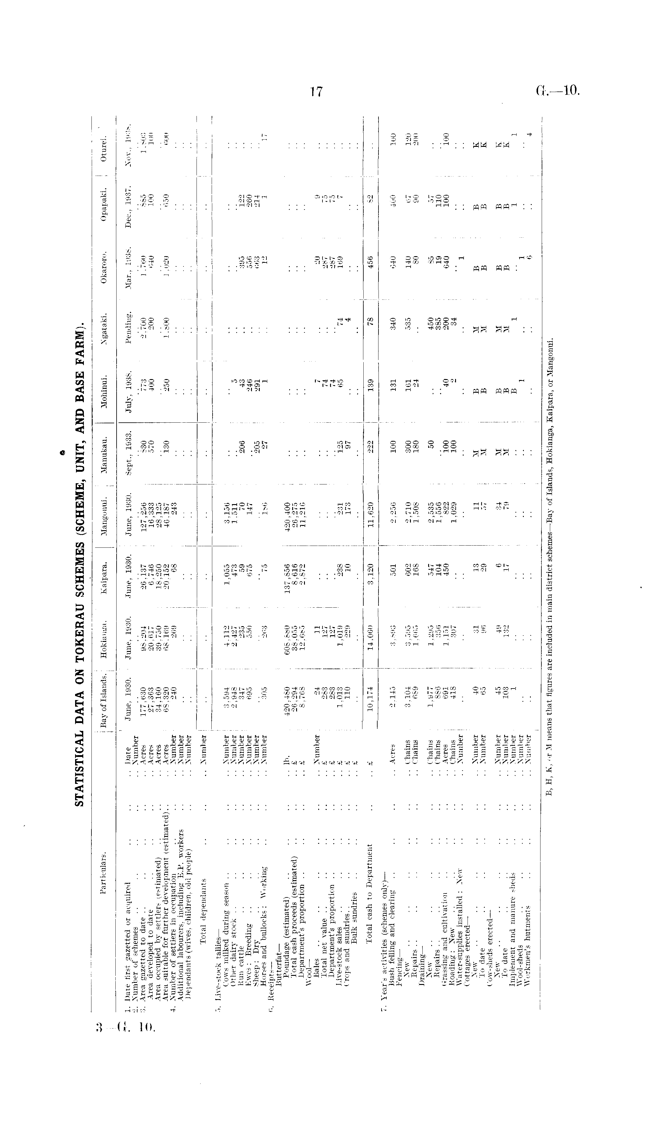 STATISTICAL DATA ON TOKERAU SCHEMES (SCHEME, UNIT, AND BASE FARM).