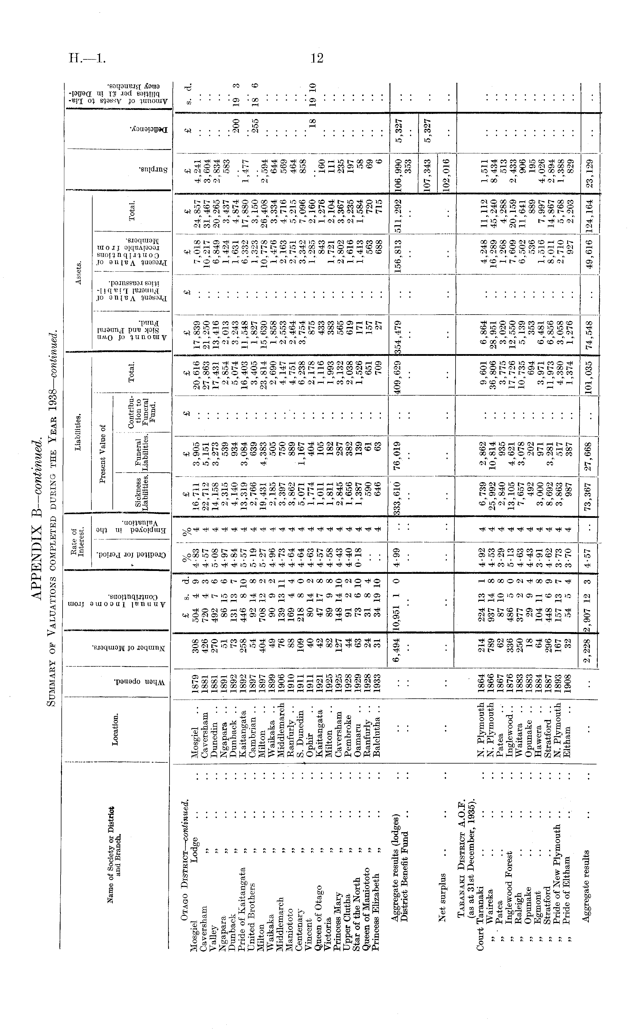 APPENDIX B— continued. Summary of Valuations completed during the Year 1938— continued.