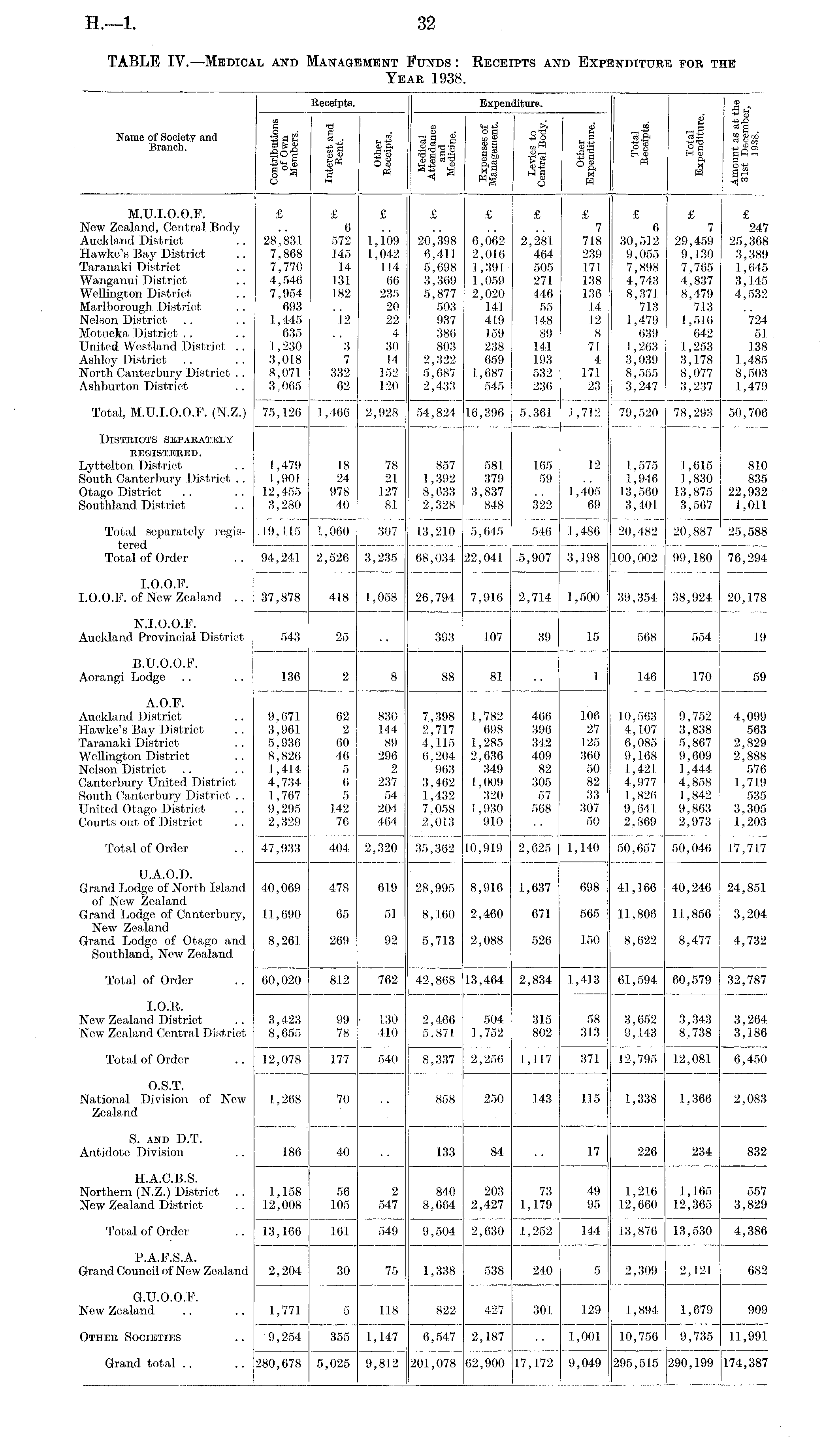 TABLE IV. —Medical and Management Funds: Receipts and Expenditure for the Year 1938.
