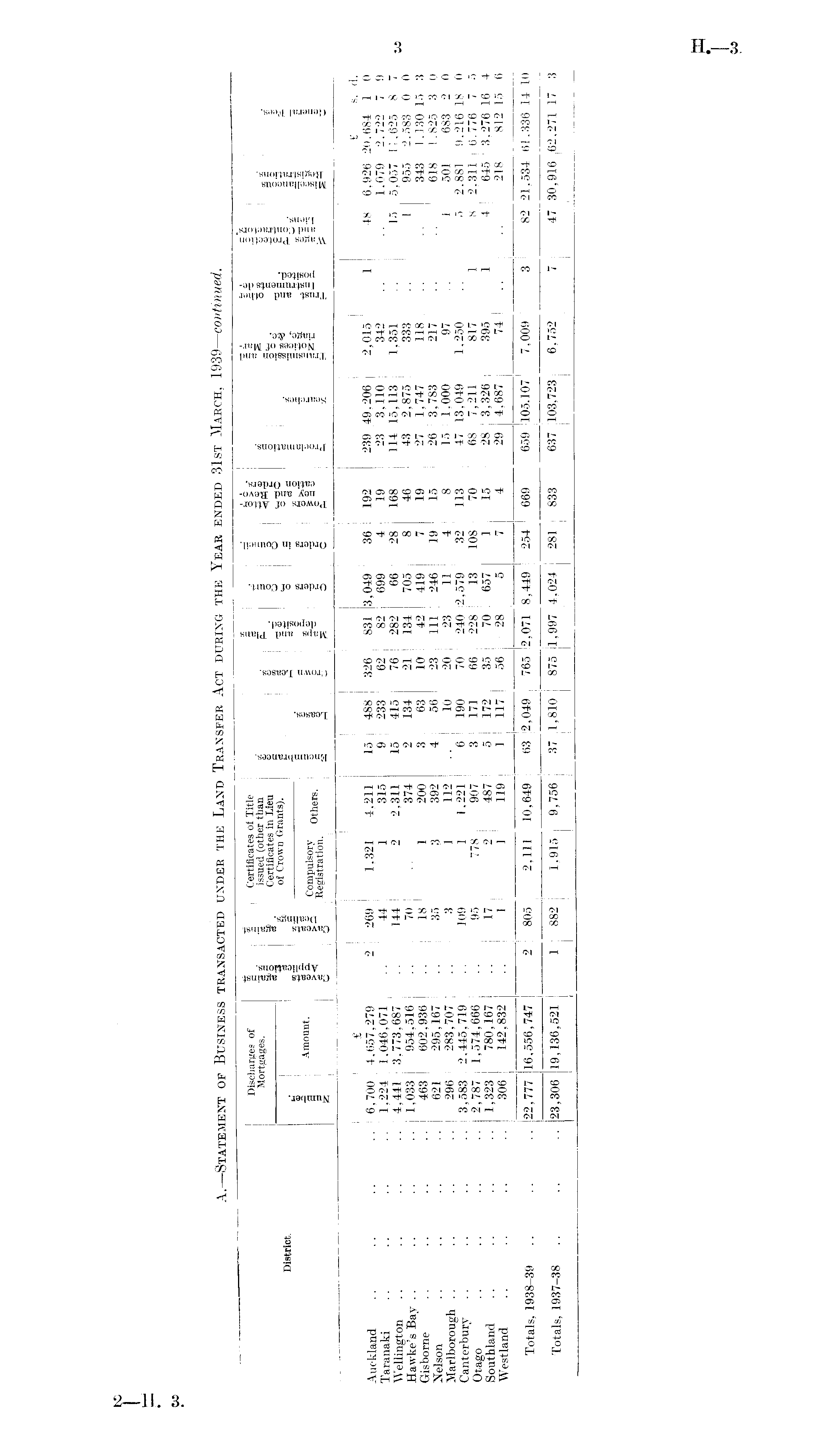 A.-Statement of Business transacted under the Land Transfer Act during the Year ended 31st March, 1939— continued.