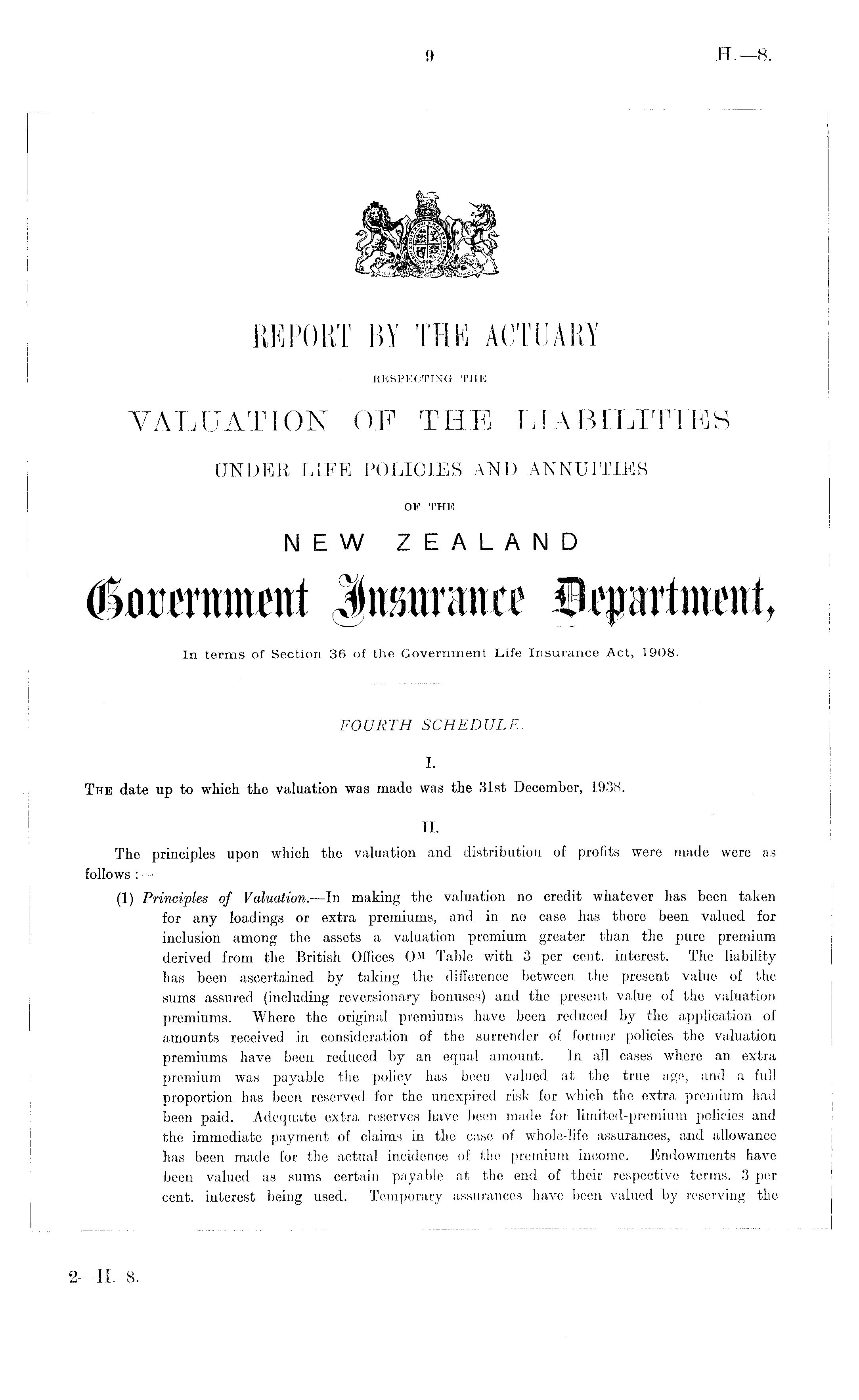 REPORT BY THE ACTUARY HESPECTING THE VALUATION OF THE LIABILITIES UNDER LIFE POLICIES AND ANNUITIES OF THE NEW ZEALAND (ikuernment Jnmirance department, In terms of Section 36 of the Government Life Insurance Act, 1908.
