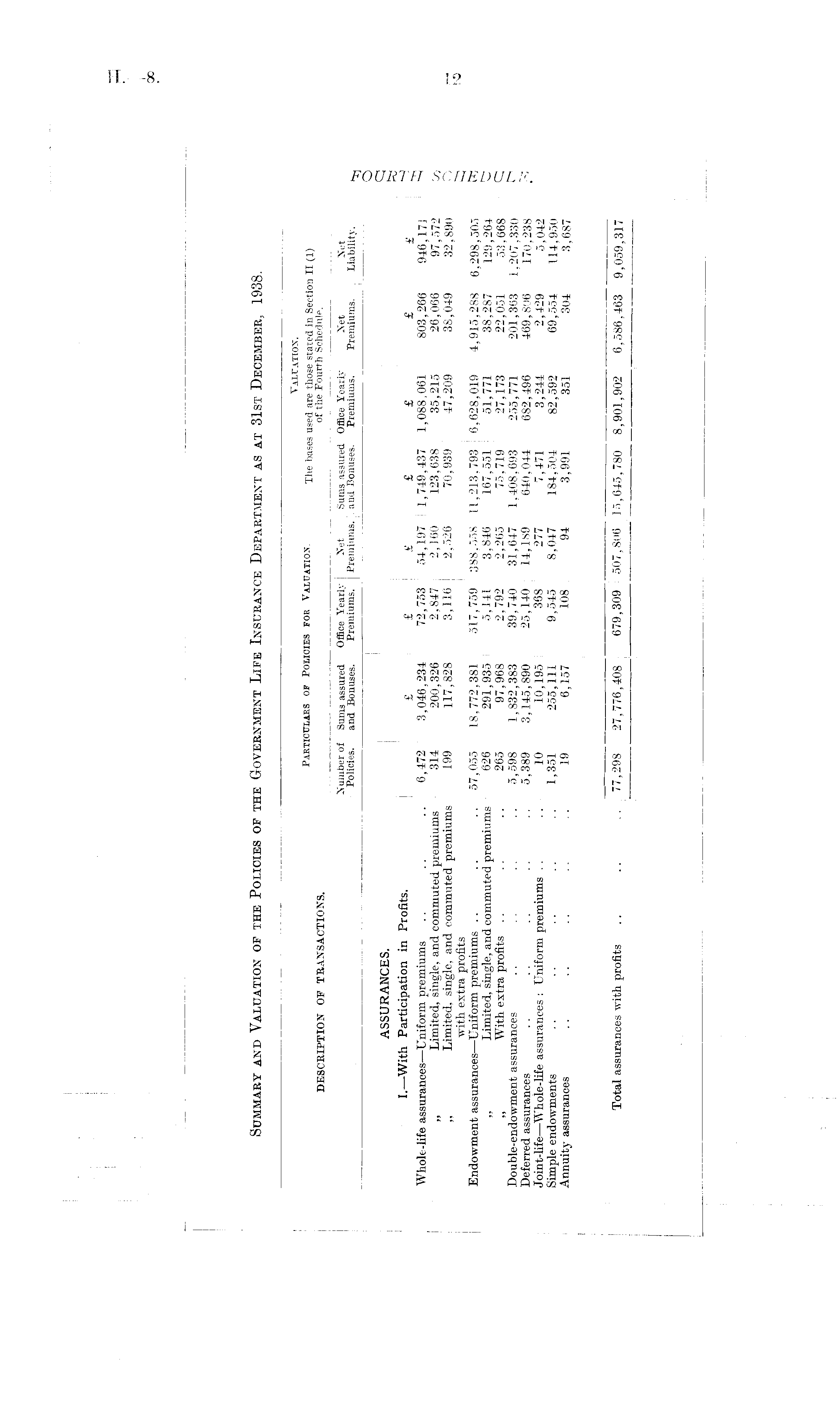 Summary and Valuation of the Policies of the Government Life Insurance Department as at 31st December, 1938.