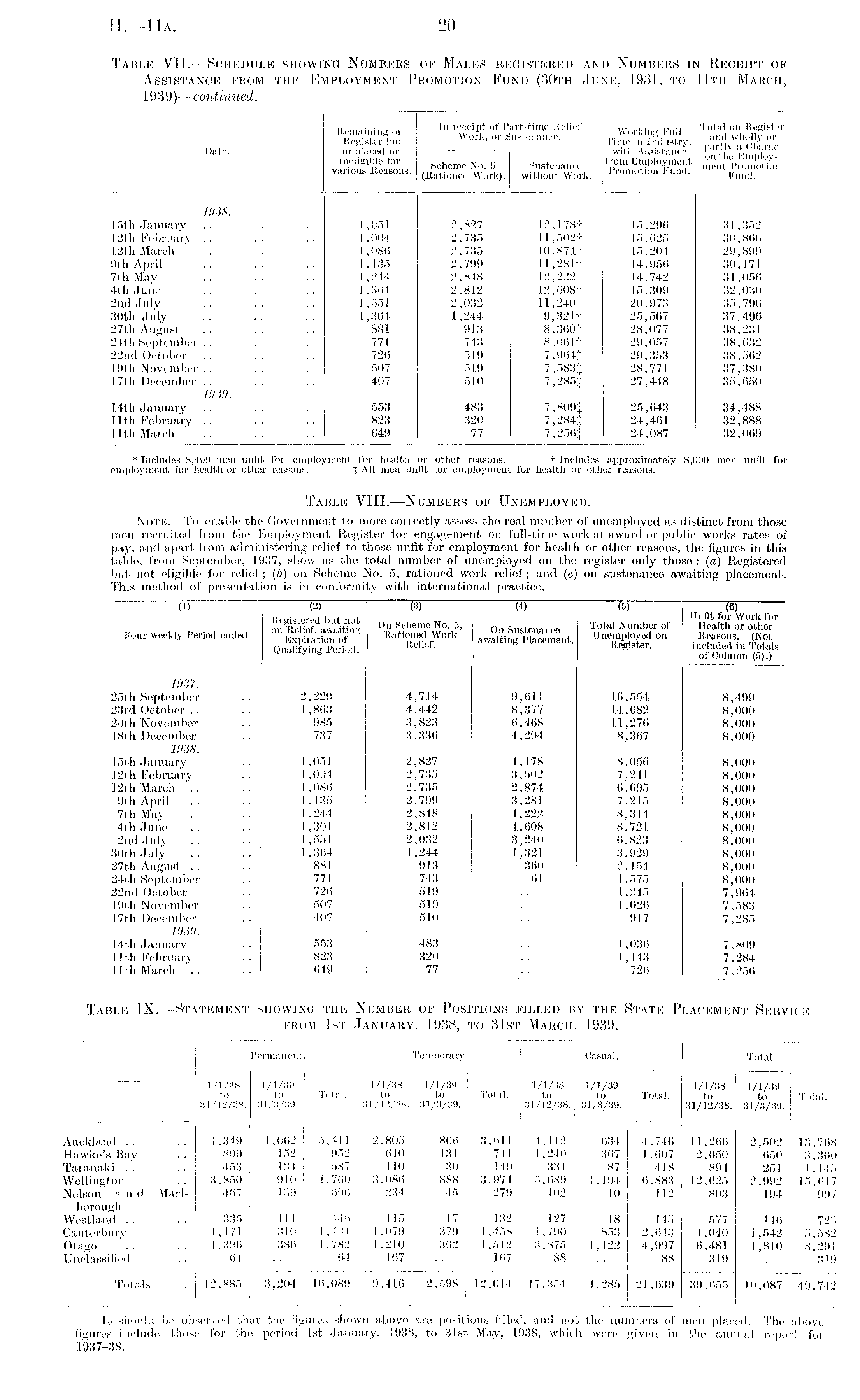 Table VII. —Schedule showing Numbers of Males registered and Numbers in Receipt of Assistance from the Employment Promotion Fund (30th June, 1931, to 11th March, 1939) —continued.