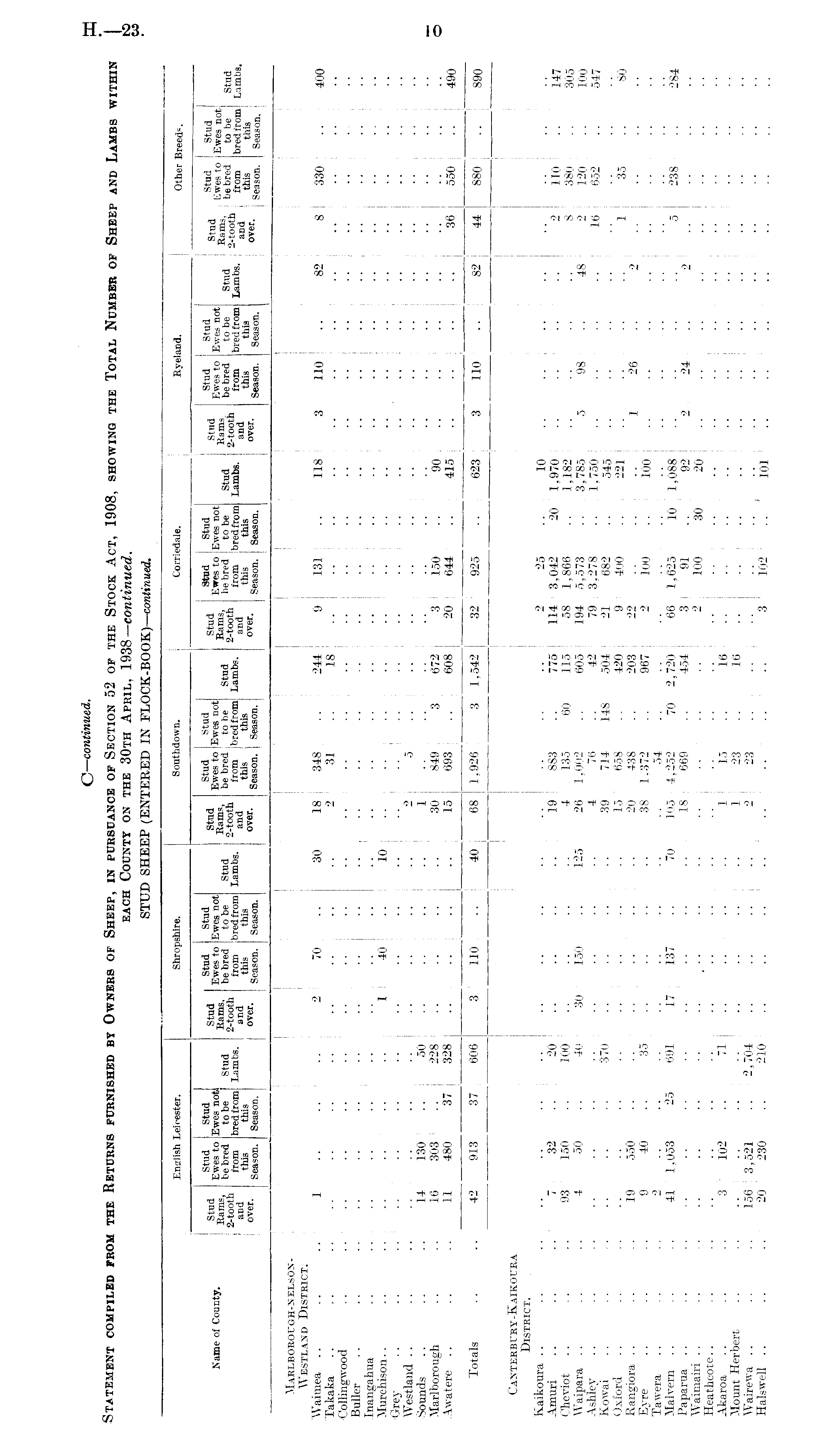 C—continued. Statement compiled from the Returns furnished by Owners of Sheep, in pursuance of Section 52 of the Stock Act, 1908, showing the Total Number of Sheep and Lambs within each County on the 30th April, 1938—continued. STUD SHEEP (ENTERED IN FLOCK-BOOK)— continued.