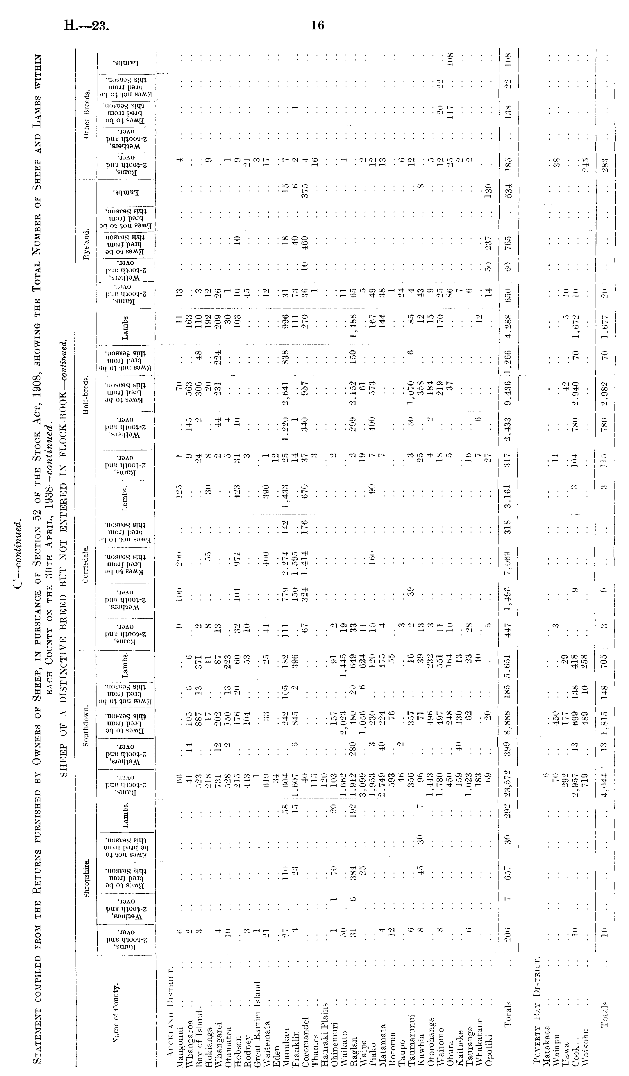 C— continued. Statement compiled from the Returns furnished by Owners of Sheep, in pursuance of Section 52 of the Stock Act, 1908, showing the Total Number of Sheep and Lambs within each County on the 30th April, 1938— continued. SHEEP OF A DISTINCTIVE BREED BUT NOT ENTERED IN FLOCK-BOOK— continued.