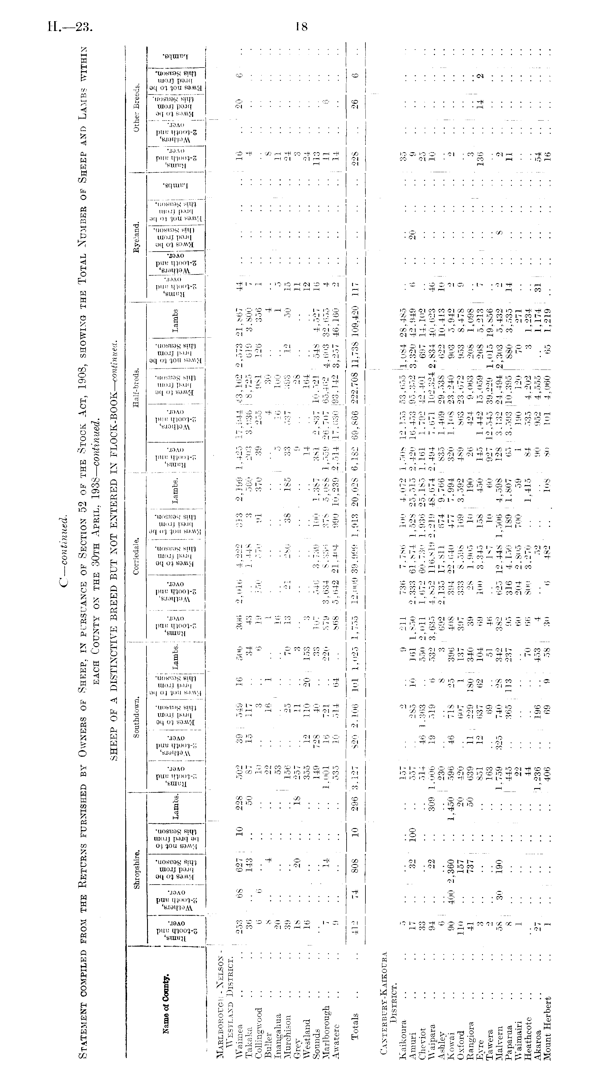 C— continued. Statement compiled from the Returns furnished by Owners of Sheep, in pursuance of Section 52 of the Stock Act, 1908, showing the Total Number of Sheep and Lambs within each County on the 30th April, 1938— continued. SHEEP OF A DISTINCTIVE BREED BUT NOT ENTERED IN FLOCK-BOOK— continued.