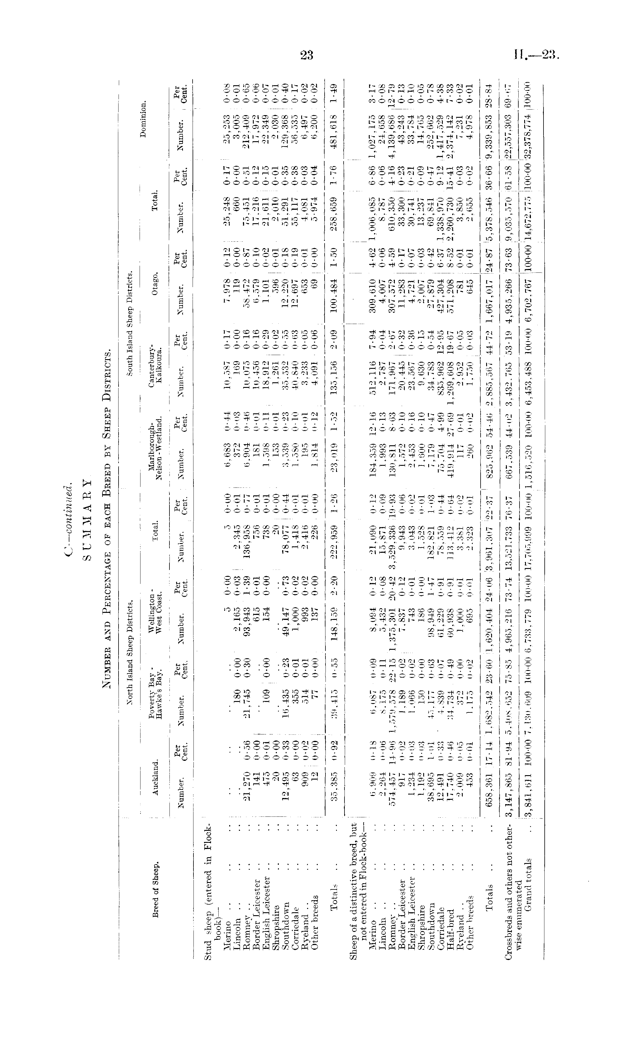 C— continued. SUMMARY. Number and Percentage of each Breed by Sheep Districts.