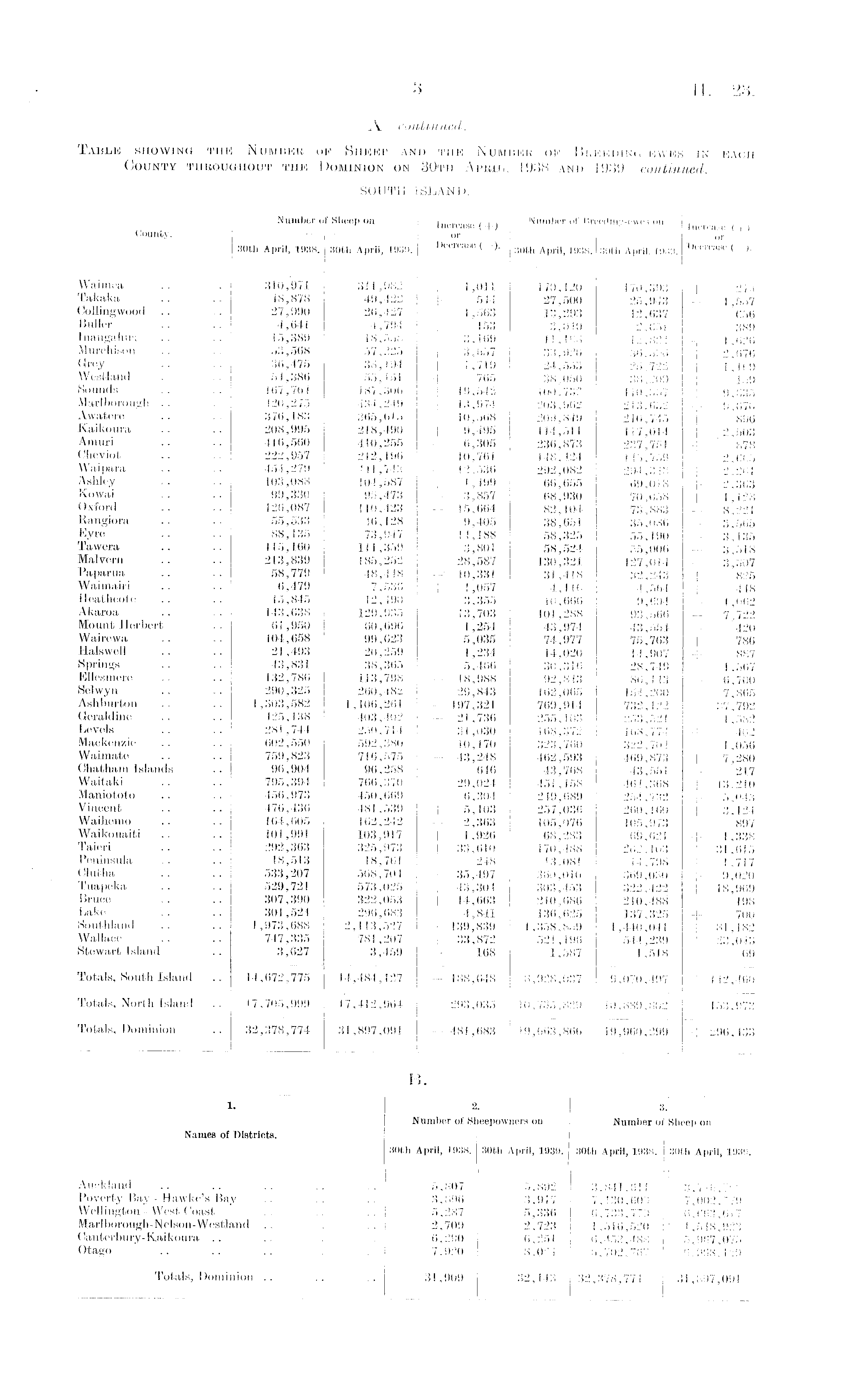 A —continued. Table showing the Number of Sheep and the Number of Breeding-ewes in each County throughout the Dominion on 30th April, 1938 and 1939 —continued. SOUTH ISLAND.