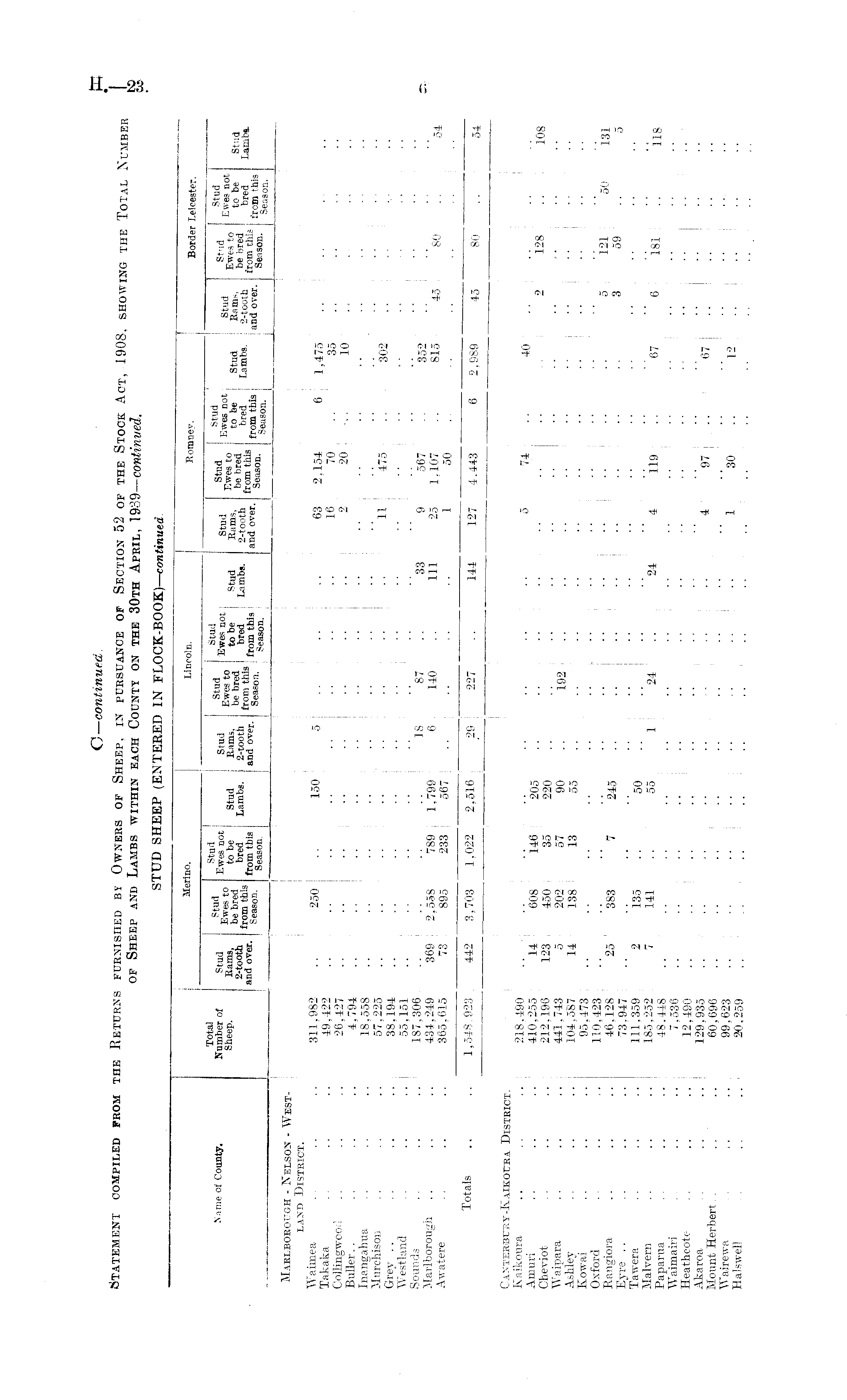 C—continued. Statement compiled from the Returns furnished by Owners of Sheep, in pursuance of Section 52 of the Stock Act, 1908, showing the Total Number of Sheep and Lambs within each County on the 30th April, 1939—continued. STUD SHEEP (ENTERED IN FLOCK-BOOK)—continued.