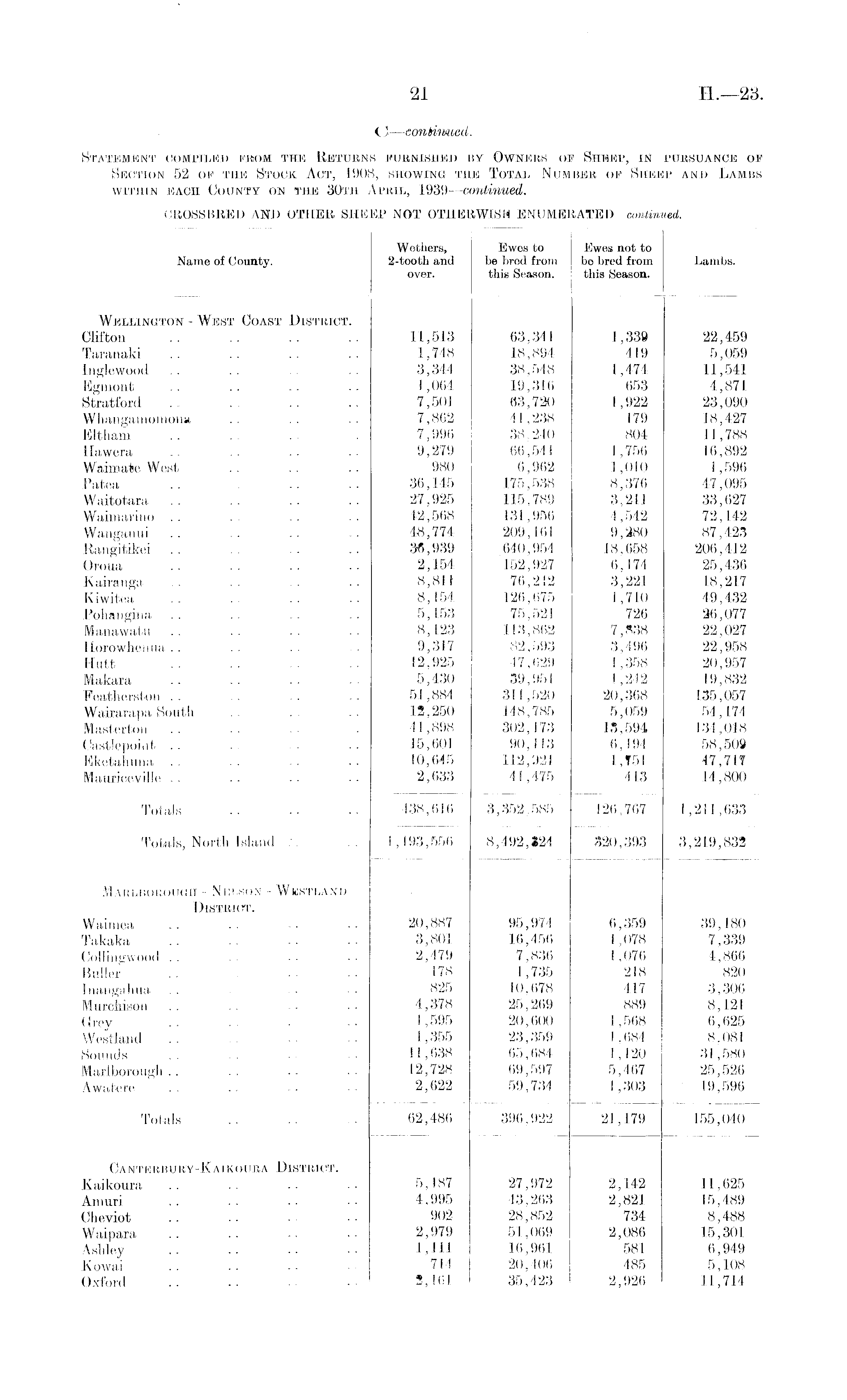 C —continued. Statement compiled from the Returns furnished by Owners of Sheep, in pursuance of Section 52 of the Stock Act, 1908, showing the Total Number of Sheep and Lambs within each County on the 30th April, 1939 —continued. CROSSBRED AND OTHER SHEEP NOT OTHERWISE ENUMERATED—continued.