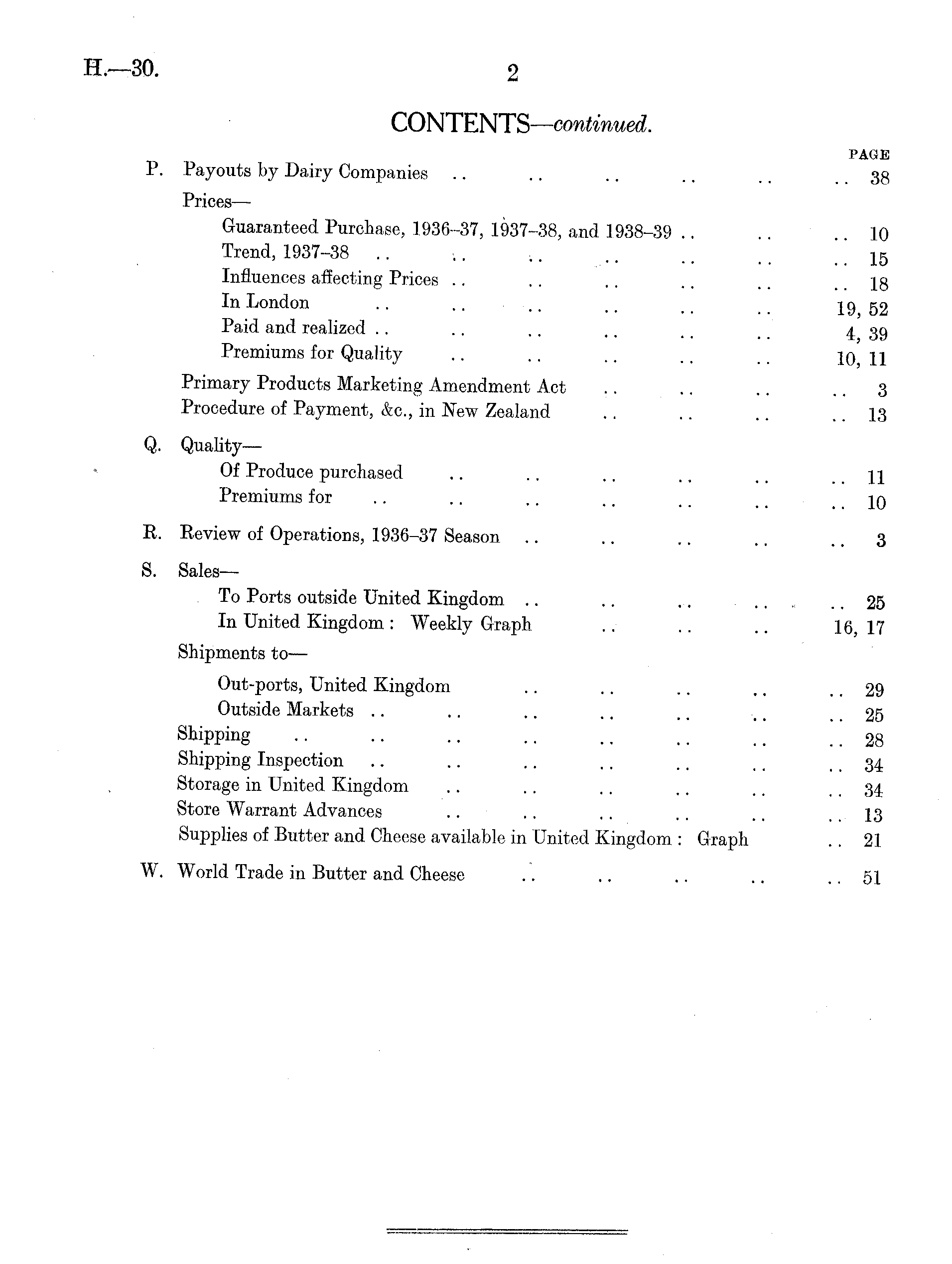 CONTENTS —continued. PAGE P. Payouts by Dairy Companies .. .. .. .. 38 Prices— Guaranteed Purchase, 1936-37, 1937-38, and 1938-39 .. .. 10 Trend, 1937-38 .. .. .. .. l 5 Influences affecting Prices .. .. .. .. ~ 28 In London .. .. .. ~ 19 52 Paid and realized . . .. .. .. 4 39 Premiums for Quality .. .. .. ~ 10 11 Primary Products Marketing Amendment Act .. .. .. .. 3 Procedure of Payment, &c., in New Zealand .. .. .. .. 13 Q. Quality— Of Produce purchased .. . . .. .. .. 11 Premiums for .. .. .. .. . _ .10 R. Review of Operations, 1936-37 Season .. .. .. 3 S. Sales— To Ports outside United Kingdom. .. .. .. .. .. 25 In United Kingdom : Weekly Graph .. .. .. 16, 17 Shipments to — Out-ports, United Kingdom .. .. .. ~ .. 29 Outside Markets .. .. .. .. ~ 25 Shipping .. .. .. .. .. .. .. 28 Shipping Inspection .. .. ~ .. .. .. 34 Storage in United Kingdom .. . . . . .. ~ . . 34 Store Warrant Advances .. .. .. .. .. .13 Supplies of Butter and Cheese available in United Kingdom : Graph .. 21 W. World Trade in Butter and Cheese .. .. .. .. .. 51