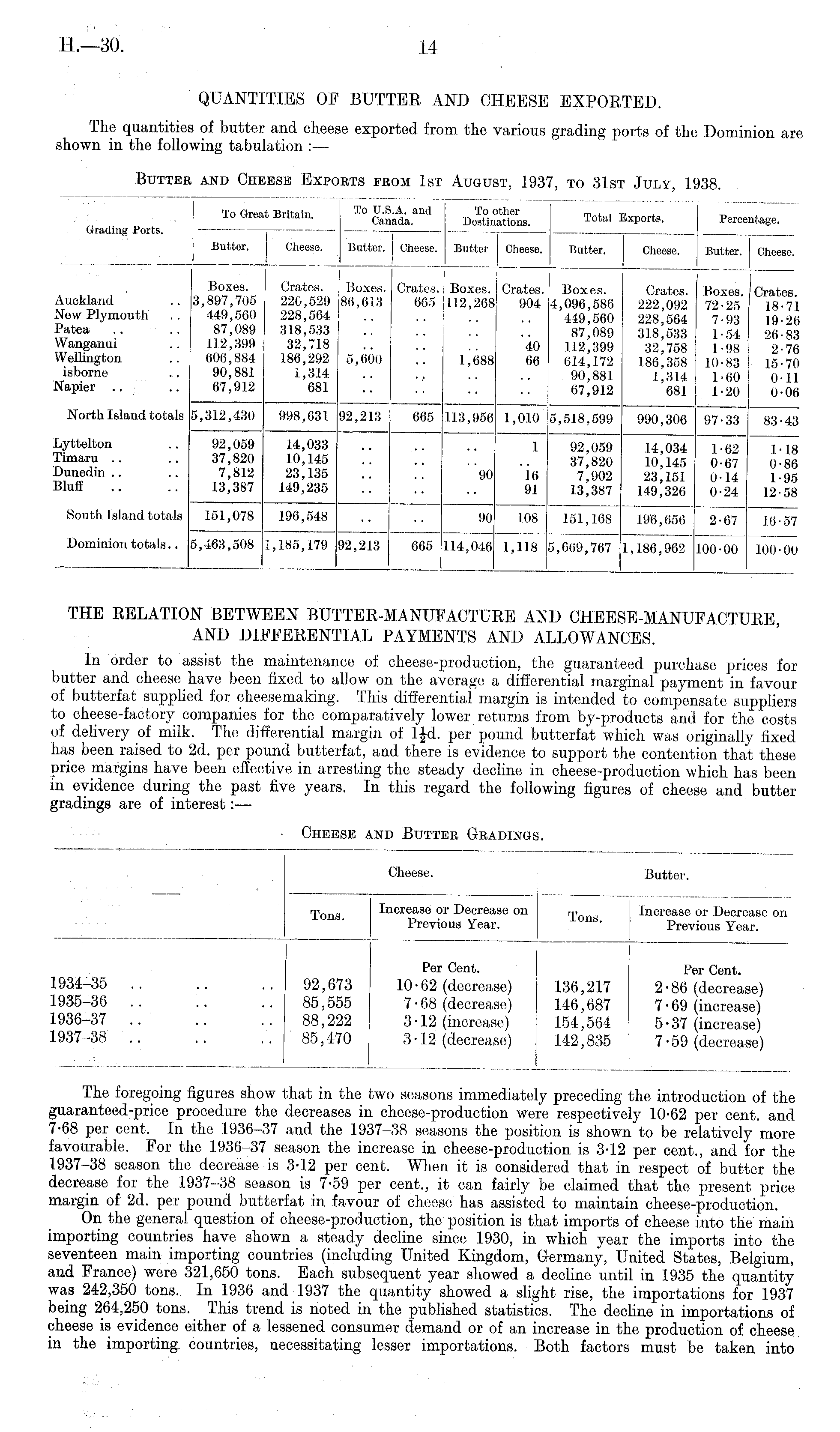 Butter and Cheese Exports from 1st August, 1937, to 31st July, 1938.