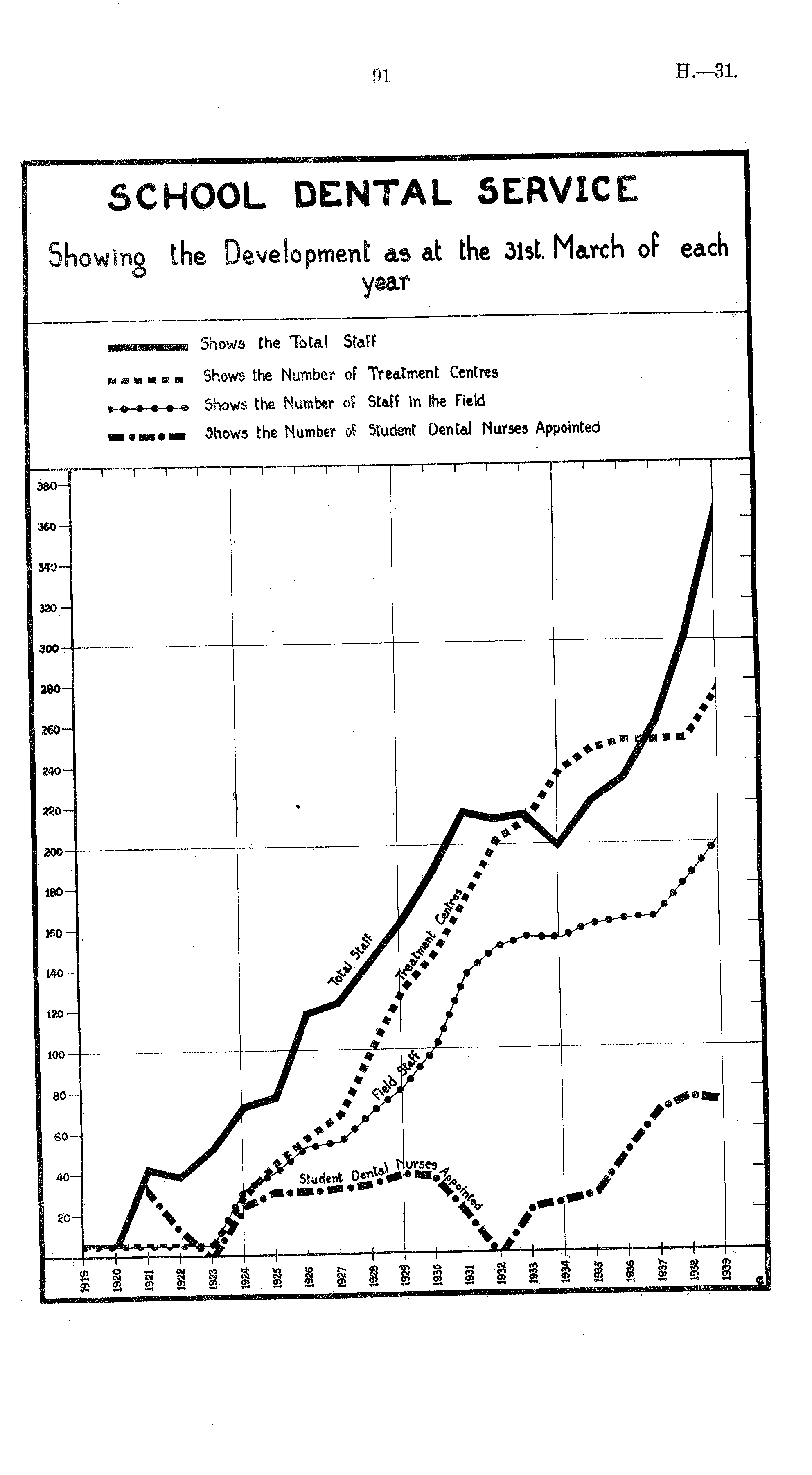 SCHOOL DENTAL SERVICE Showing the Development as at the 31st. March of each year