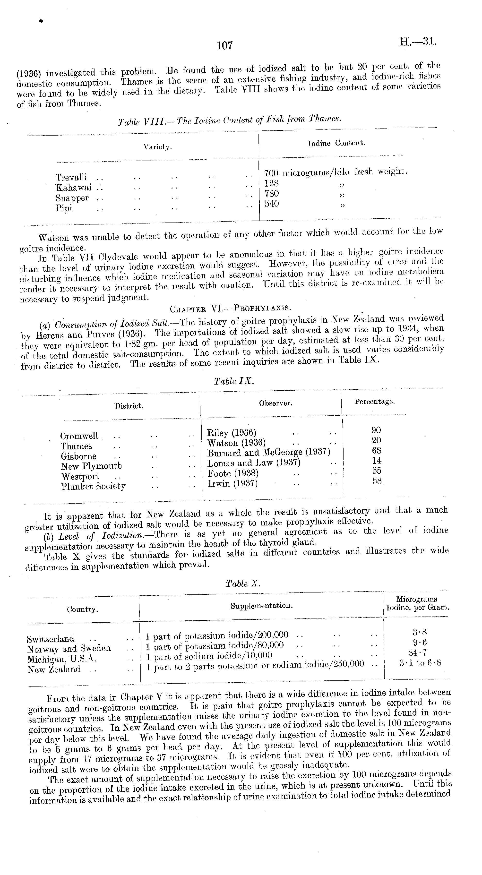 i nV estia:ated this problem. He found the use of iodized salt to be but 20 per cent, of the i ' V nJnmntion Thames is the scene of an extensive fishing industry, and lodme-rich fishes to be widely used in the dietary. Table VIII shows the iodine content of some varieties of fish from Thames.