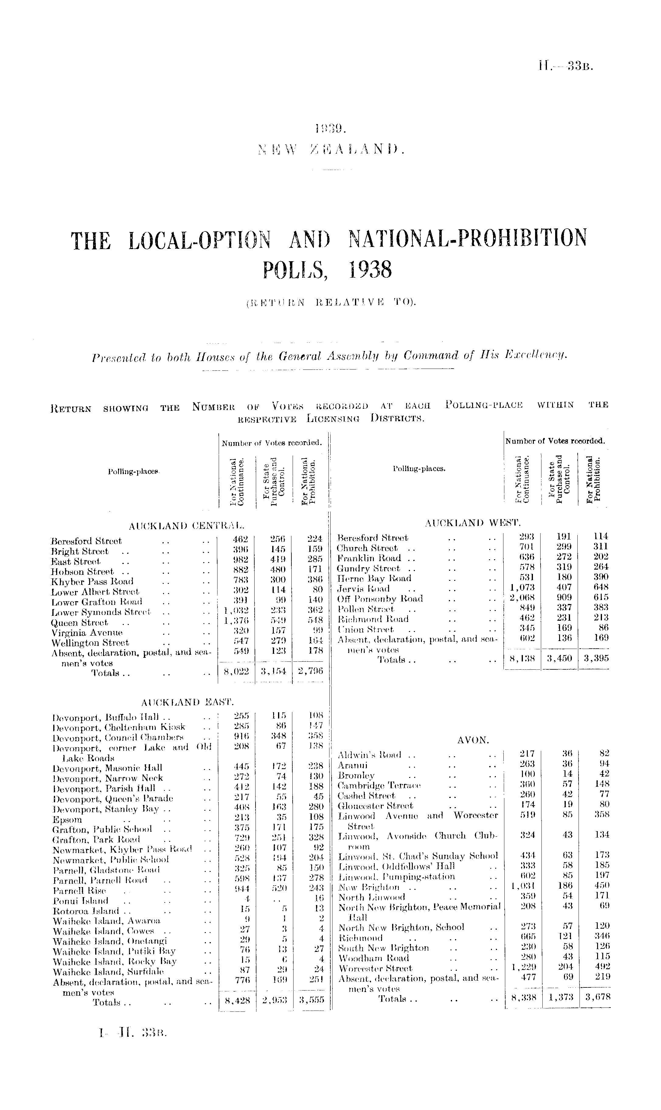 THE LOCAL-OPTION AND NATIONAL-PROHIBITION POLLS, 1938 (RETURN RELATIVE TO).