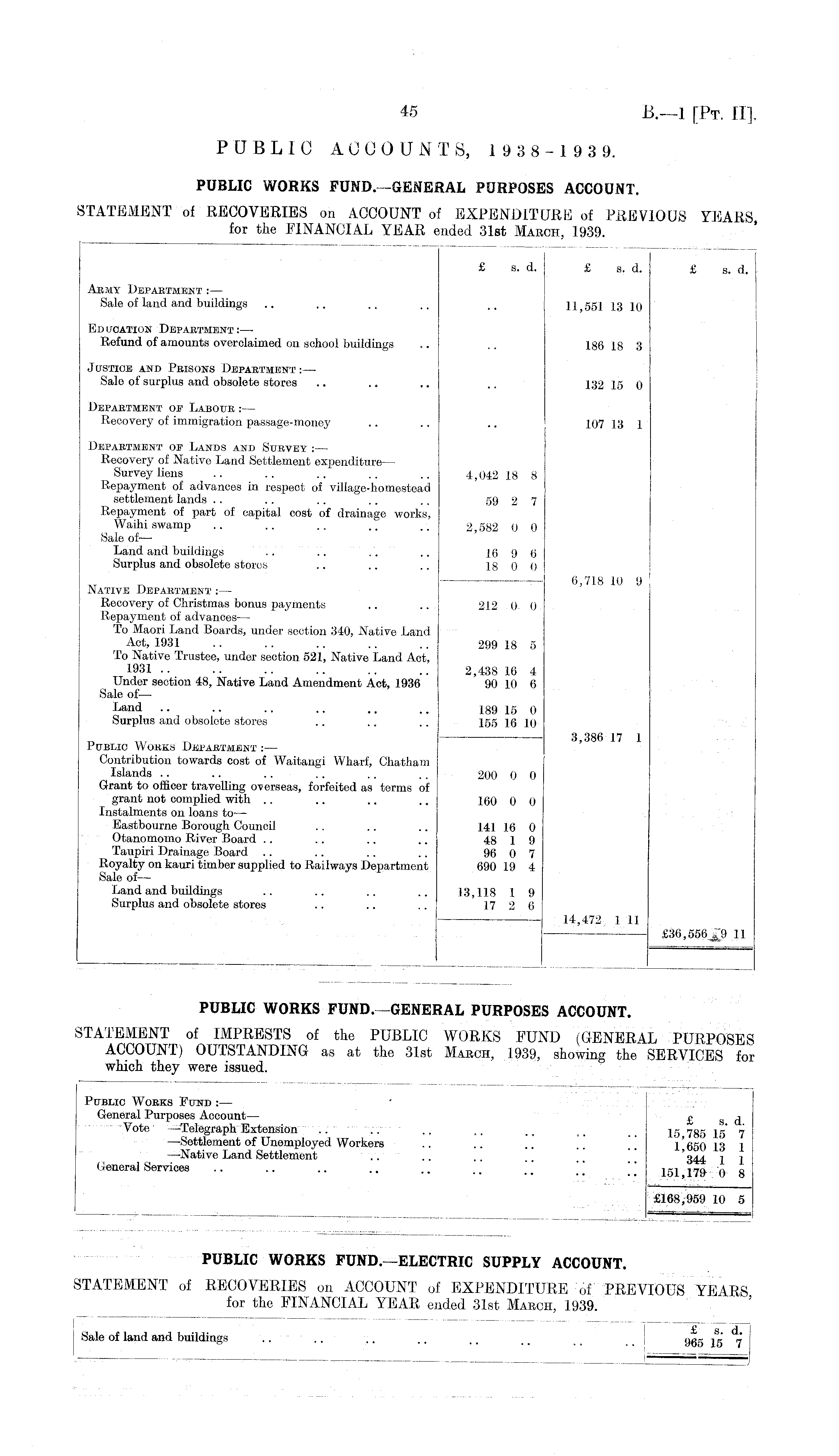 PUBLIC WORKS FUND.—GENERAL PURPOSES ACCOUNT. STATEMENT of RECOVERIES on ACCOUNT of EXPENDITURE of PREVIOUS YEARS, for the FINANCIAL YEAR ended 31st March, 1939.