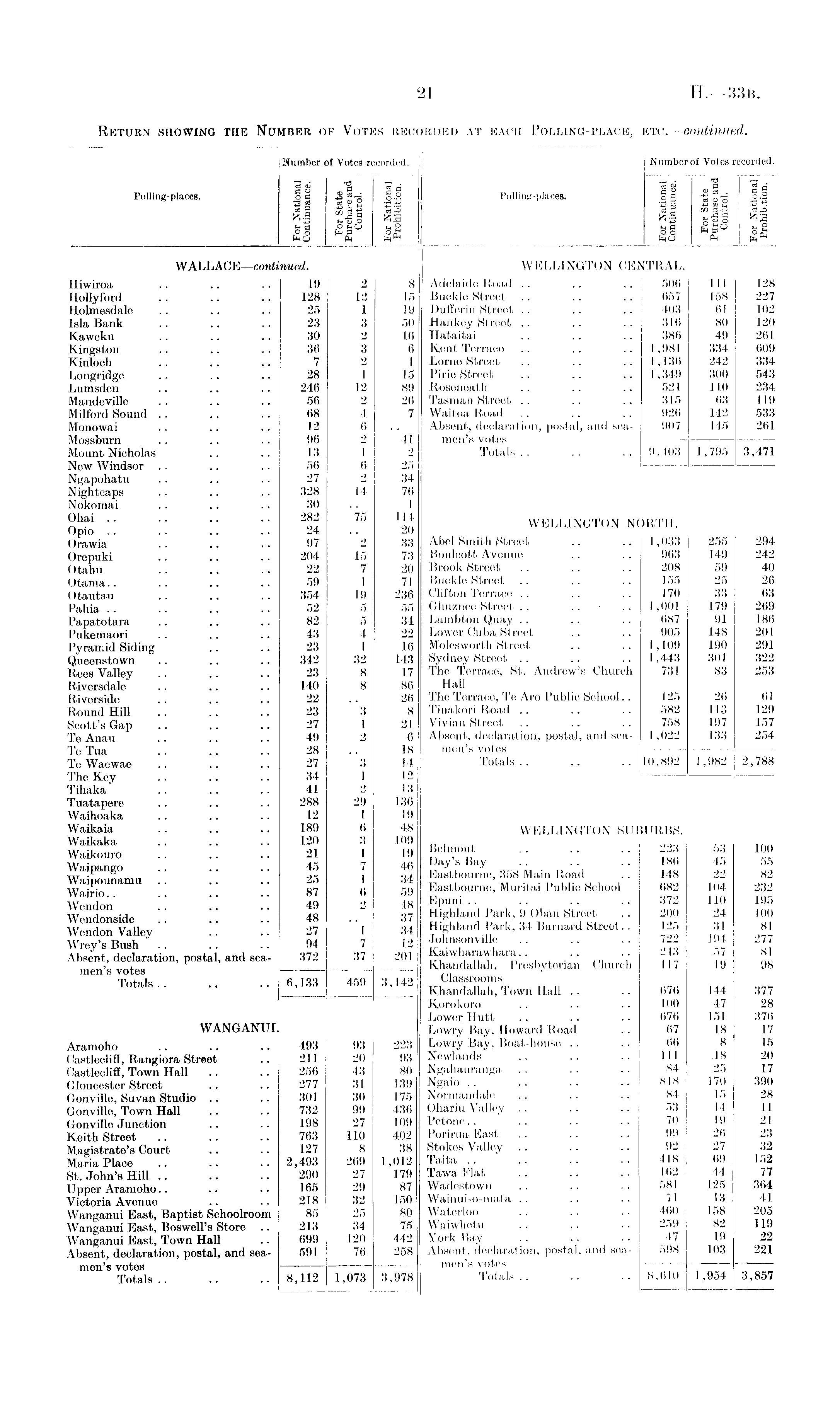Number of Votes recorded. S 8 "a g o Polling-places. o a £ o -2 S3 2 S3 .15 fc.S "I a jgS o § gs® gs EnS f4 WALLACE—continued. Hiwiroa .. .. .. 19 2 8 Hollyford .. .. .. 128 12 15 Holmesdale .. .. .. 25 1 19 Isla Bank .. .. .. 23 3 50 Kaweku .. .. .. 30 2 16 Kingston .. .. .. 36 3 6 Kinloch .. .. .. 7 2 1 Longridge .. .. .. 28 1 15 Lumsden .. .. .. 246 12 89 Mandeville .. .. .. 56 2 26 Milford Sound .. .. .. 68 4 7 Monowai .. .. .. 12 6 Mossburn .. .. .. 96 2 41 Mount Nicholas .. .. 13 1 New Windsor .. .. .. 56 6 25 Ngapohatu .. .. .. 27 2 34 Nightcaps .. .. .. 328 14 76 Nokomai .. .. .. 30 .. 1 Ohai .. .. .. .. 282 75 114 Opio .. .. .. .. 24 .. 20 Orawia .. .. .. 97 2 33 Orepuki .. .. .. 204 15 73 Otahu .. .. .. 22 7 20 Otama.. .. .. .. 59 1 71 Otautau .. .. .. 354 19 236 Pahia .. .. .. .. 52 5 55 Papatotara .. .. .. 82 5 34 Pukemaori .. .. .. 43 4 22 Pyramid Siding .. .. 23 1 16 Queenstown .. .. .. 342 32 143 Rees Valley .. .. .. 23 8 17 Riversdale .. .. .. 140 8 86 Riverside .. .. .. 22 .. 26 Round Hill .. .. .. 23 3 8 Scott's Gap .. .. .. 27 1 21 Te Anau .. .. .. 49 2 6 TeTua .. .. .. 28 .. 18 Te Waewae .. .. .. 27 3 14 The Key .. .. .. 34 1 12 Tihaka .. .. .. 41 2 13 Tuatapere .. .. .. 288 29 136 Waihoaka .. .. .. 12 1 19 Waikaia .. .. .. 189 6 48 Waikaka .. .. .. 120 3 109 Waikouro .. .. .. 21 1 19 Waipango .. .. .. 45 7 46 Waipounamu .. .. .. 25 I 34 Wairio.. .. .. .. 87 6 59 Wendon .. .. .. 49 2 48 Wendonside .. .. .. 48 .. 37 Wendon Valley .. .. 27 1 34 Wrey's Bush .. .. .. 94 7 12 Absent, declaration, postal, and sea- 372 37 201 men's votes — Totals.. .. .. 6,133 459 3,142 WANGANUI. Aramoho .. .. .. 493 93 223 Castlecliff, Rangiora Street .. 211 20 93 Castlecliff, Town Hall .. .. 256 43 80 Gloucester Street .. .. 277 31 139 Gonville, Suvan Studio .. .. 301 30 175 Gonville, Town Hall .. .. 732 99 436 Gonville Junction .. .. 198 27 109 Keith Street .. .. .. 763 110 402 Magistrate's Court .. .. 127 8 38 Maria Place .. .. .. 2,493 269 1,012 St. John's Hill .. .. .. 290 27 179 Upper Aramoho.. .. .. 165 29 87 Victoria Avenue .. .. 218 32 150 Wanganui East, Baptist Schoolroom 85 25 80 Wanganui East, Boswell's Store .. 213 34 75 Wanganui East, Town Hall .. 699 120 442 Absent, declaration, postal, and sea- 591 76 258 men's votes Totals 8,112 1,073 3,978