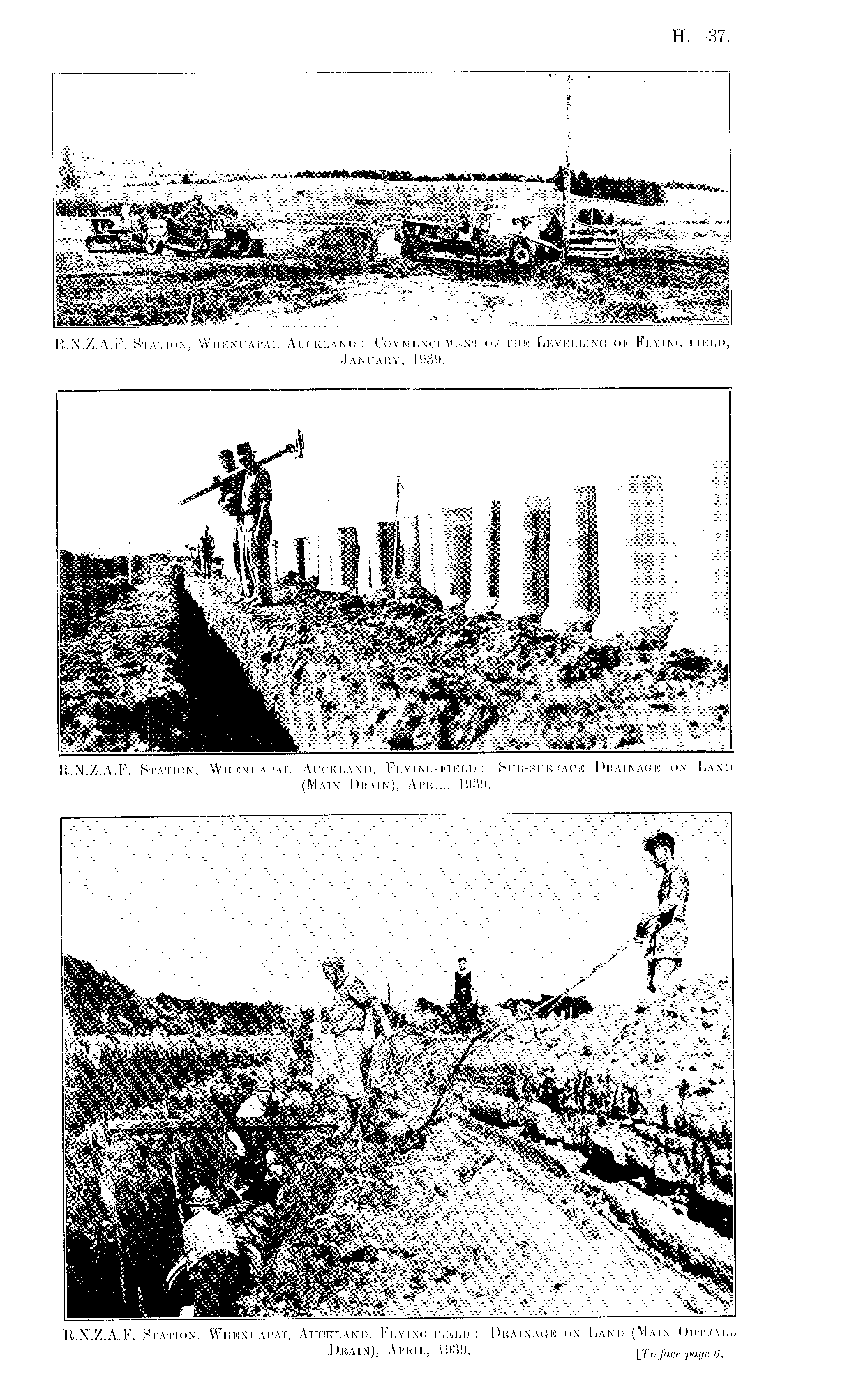 R.N.Z.A.F. Station, Whenuapai, Auckland, Flying-field: Sub-surface Drainage on Land (Main Drain), April, 1939.