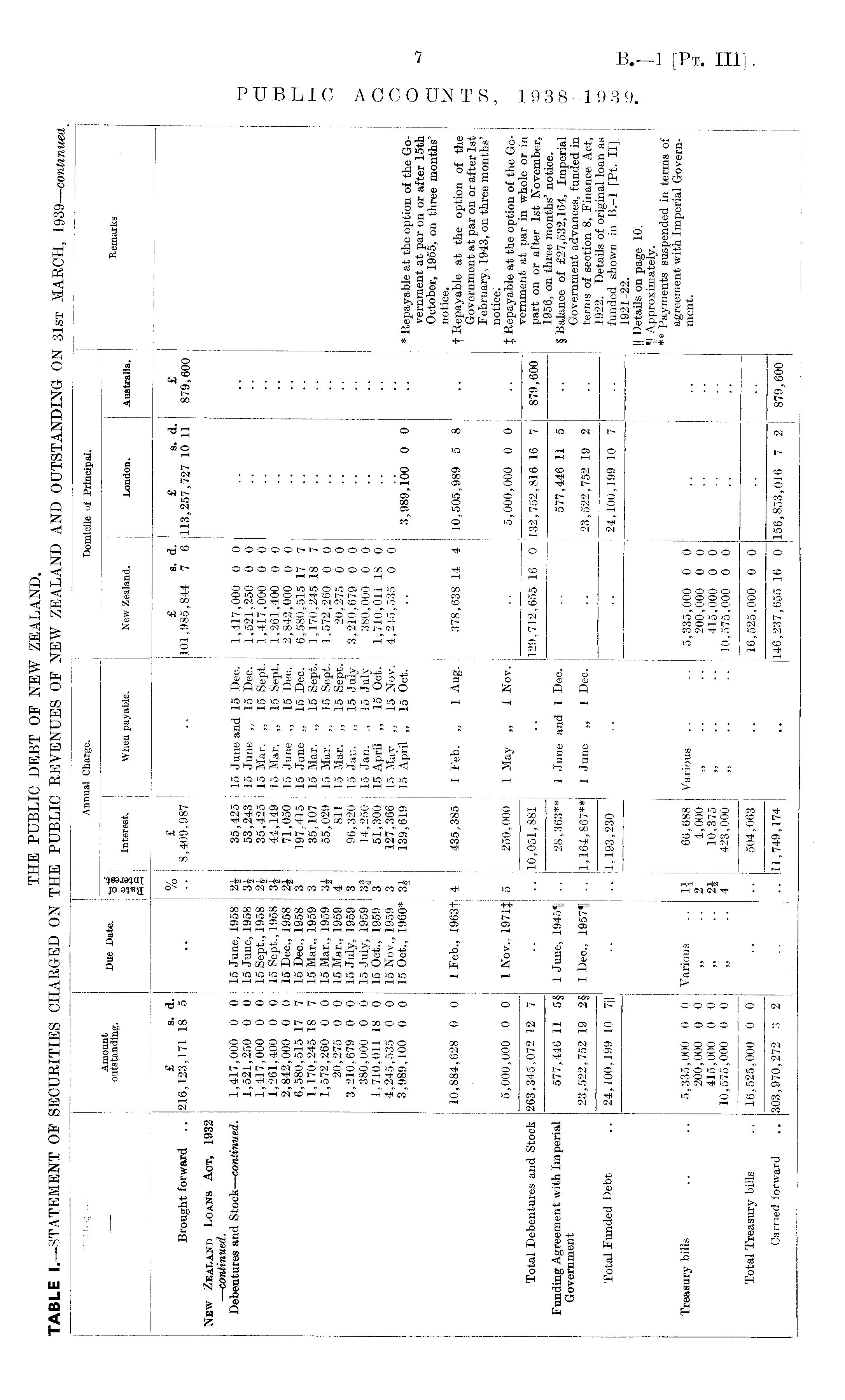 THE PUBLIC DEBT OF NEW ZEALAND. TABLE I.—STATEMENT OF SECURITIES CHARGED ON THE PUBLIC REVENUES OF NEW ZEALAND AND OUTSTANDING ON 31st MARCH, 1939—continued.