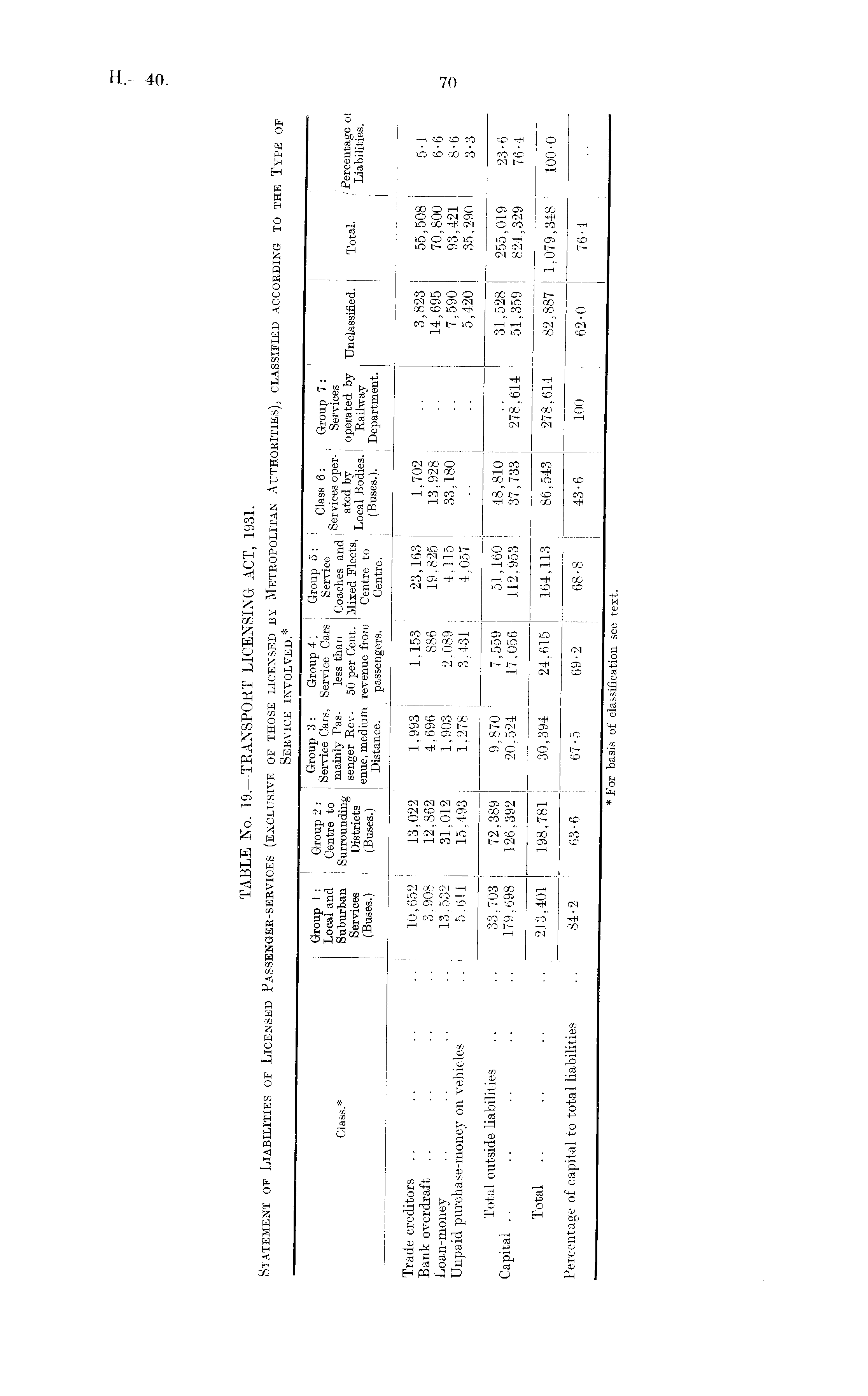 TABLE No. 19.—TRANSPORT LICENSING ACT, 1931. Statement of Liabilities of Licensed Passenger-services (exclusive of those licensed by Metropolitan Authorities), classified according to the Type of Service involved.*