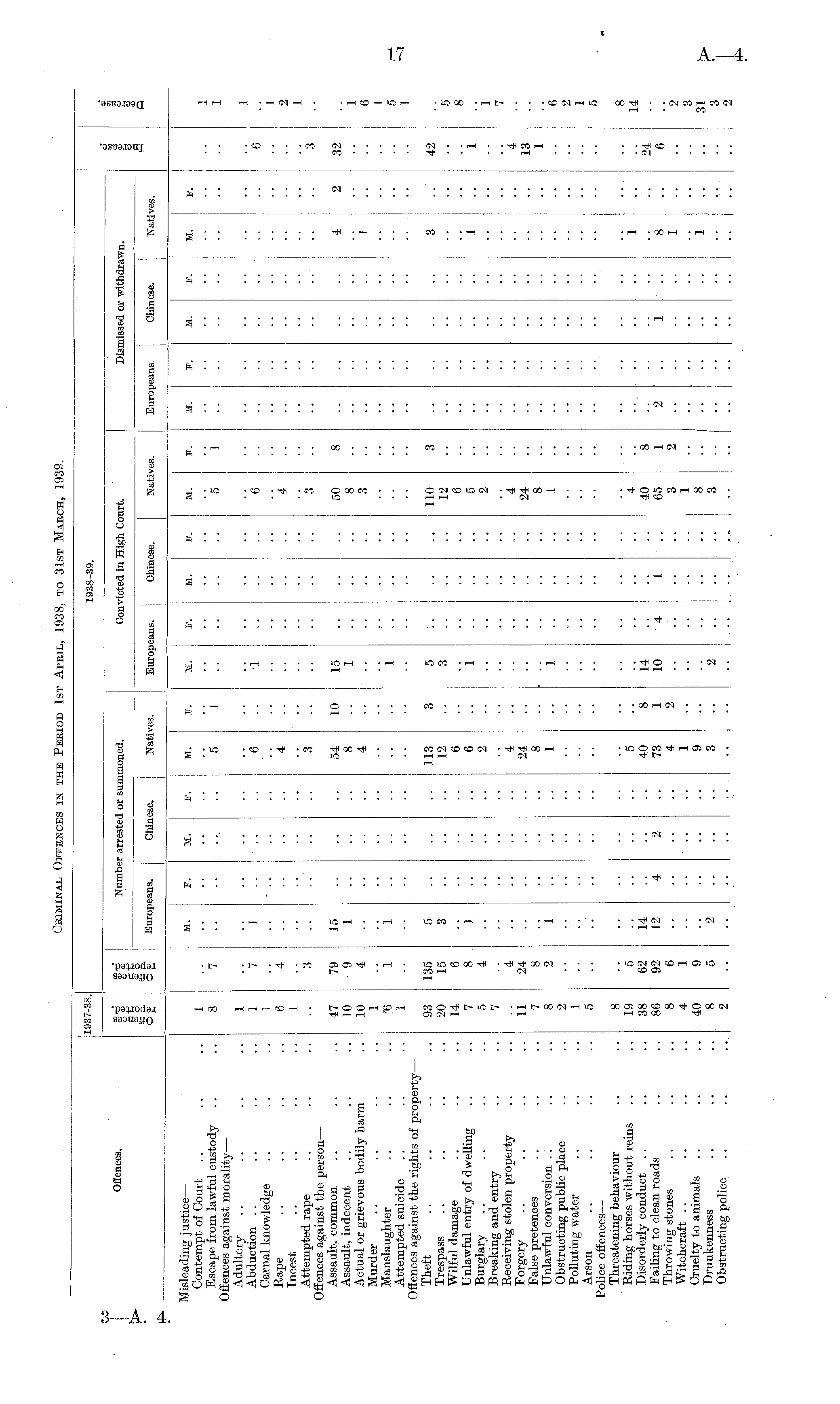 Criminal Offences in the Period 1st April, 1938, to 31st March, 1939.