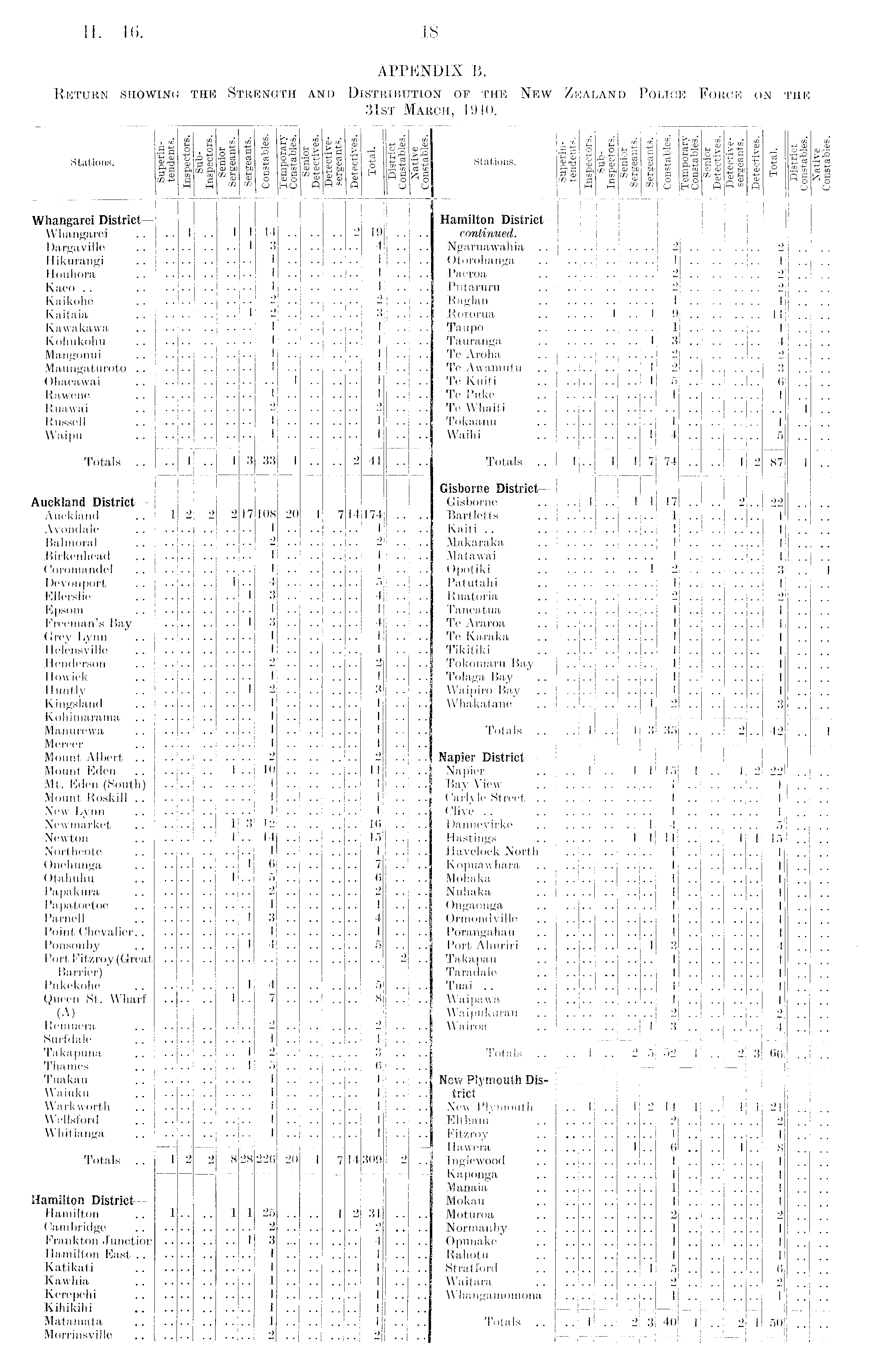 APPENDIX B. Return showing the Strength and Distribution of the New Zealand Police Force on the 31st March, 1940.