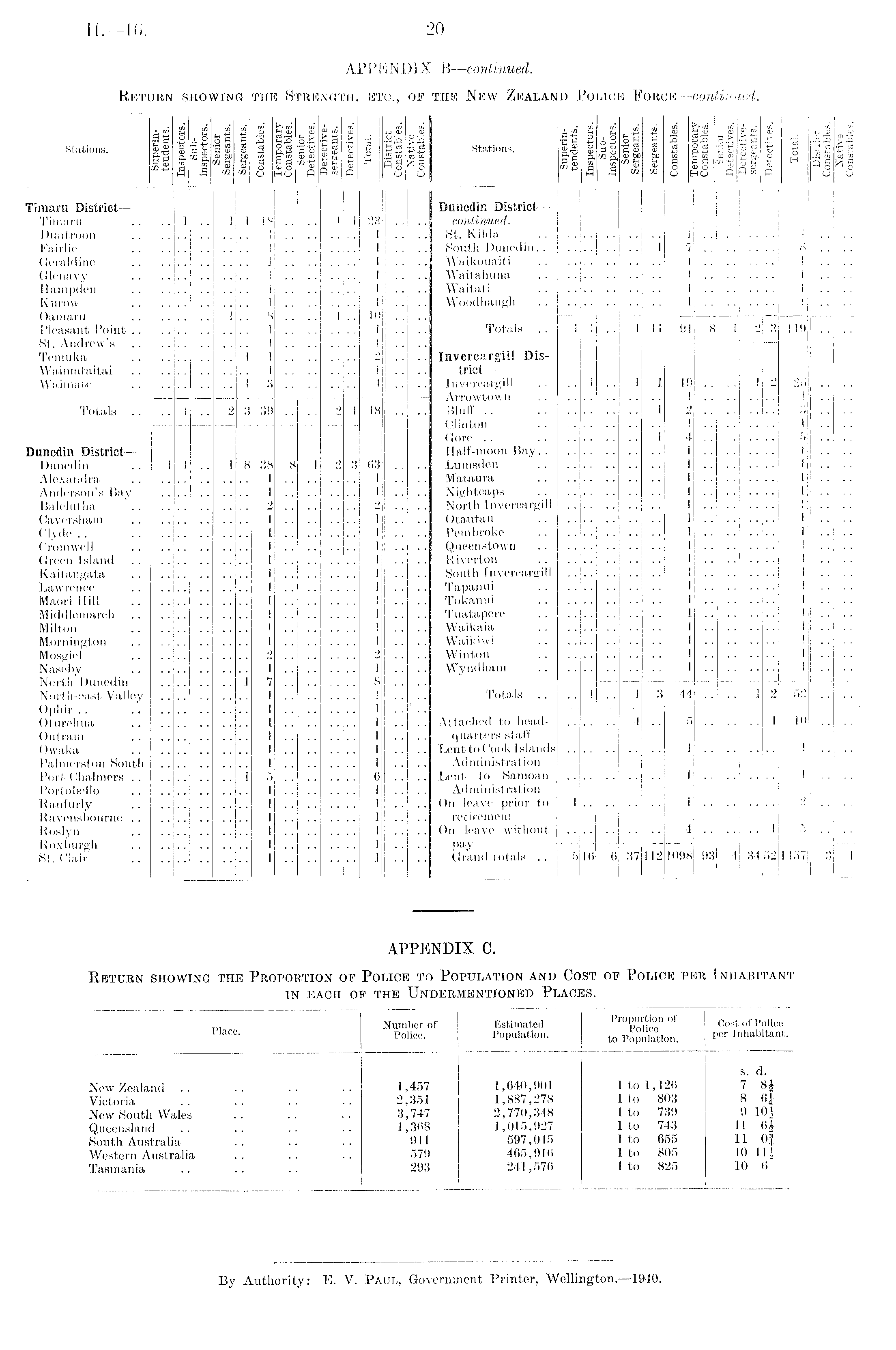 APPENDIX B—continued. Return showing the Strength, etc., of the New Zealand Police Force —continued.