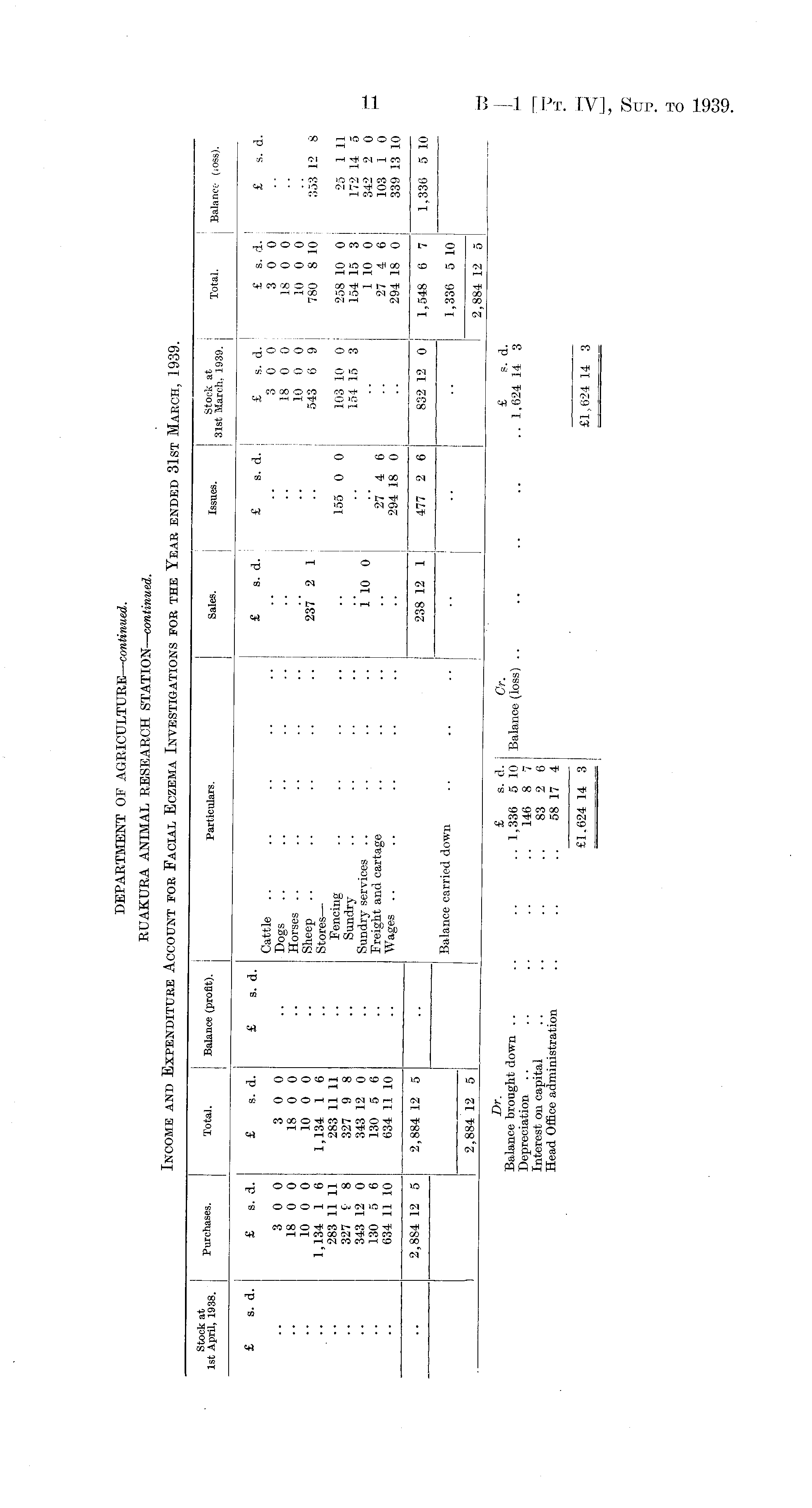 DEPARTMENT OF AGRICULTURE— continued. RUAKURA ANIMAL RESEARCH STATION— continued. Income and Expenditure Account for Facial Eczema Investigations for the Year ended 31st March, 1939.