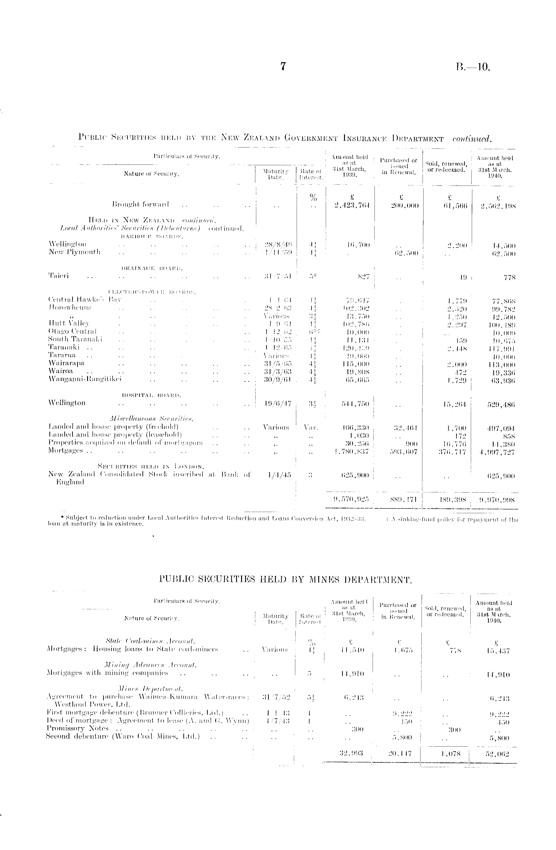 Public Securities held by the New Zealand Government Insurance Department—continued.